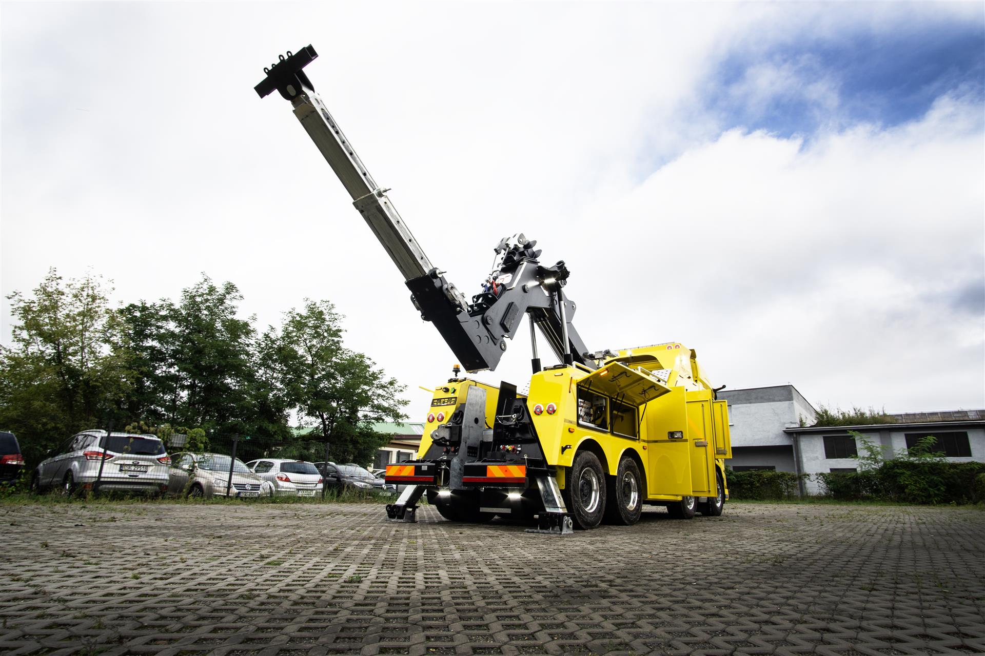Zabudowa holownicza do usuwania skutków wypadków drogowych z udziałem samochodów ciężarowych, autobusów, zestawów drogowych oraz ratownictwa drogowego. W tylnej części zamontowany wysięgnik holowniczy z podwójnym wysuwem hydraulicznym, regulowanym w trzech płaszczyznach zakończony wielofunkcyjną trawersą holowniczą z możliwością zamontowania dodatkowego osprzętu. Karoseria zabudowy z szafkami przeznaczonymi na dodatkowe wyposażenie: np. agregat prądotwórczy, kompresor, nożyce hydrauliczne, zestaw ratowniczy R1, moduły holownicze itp.