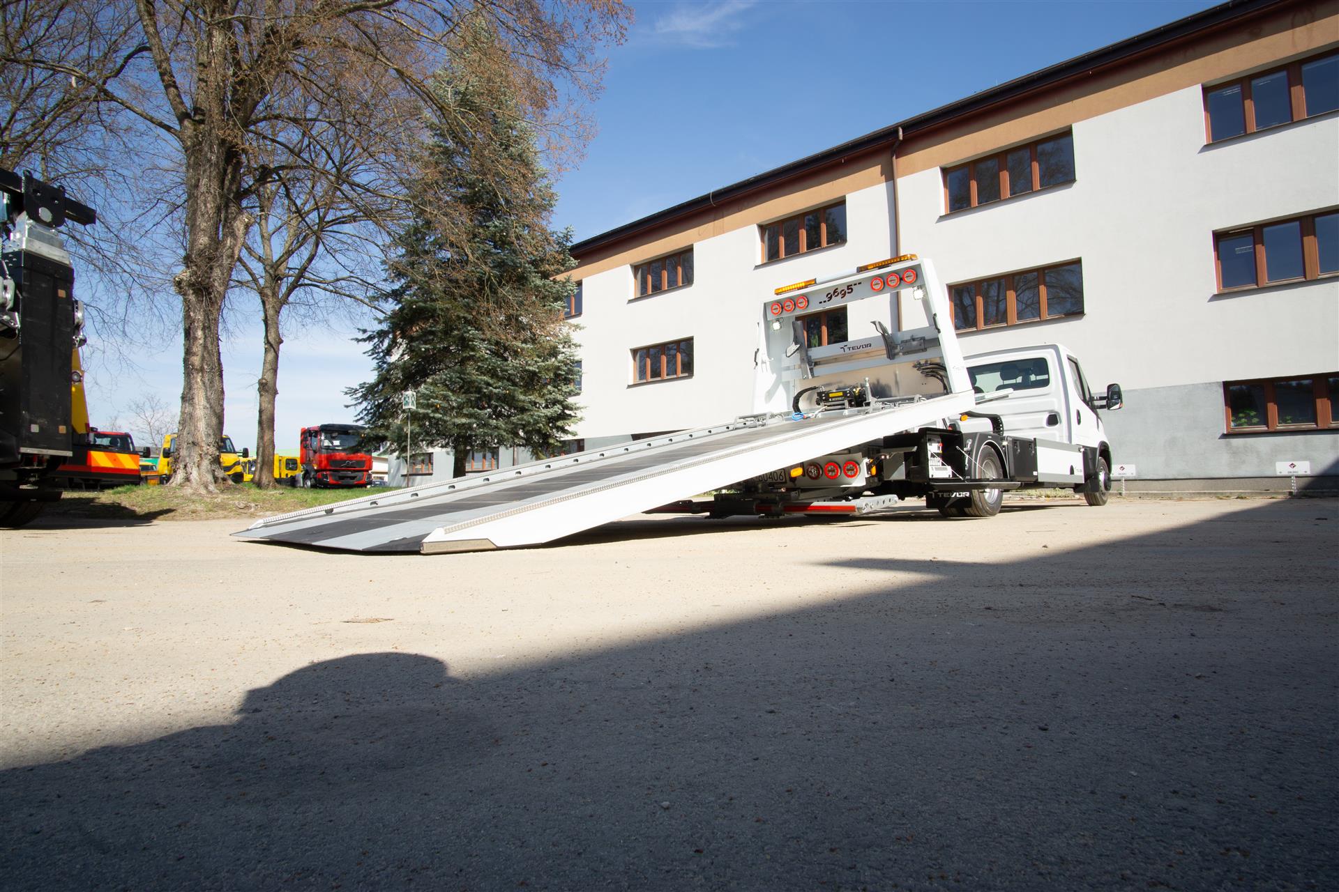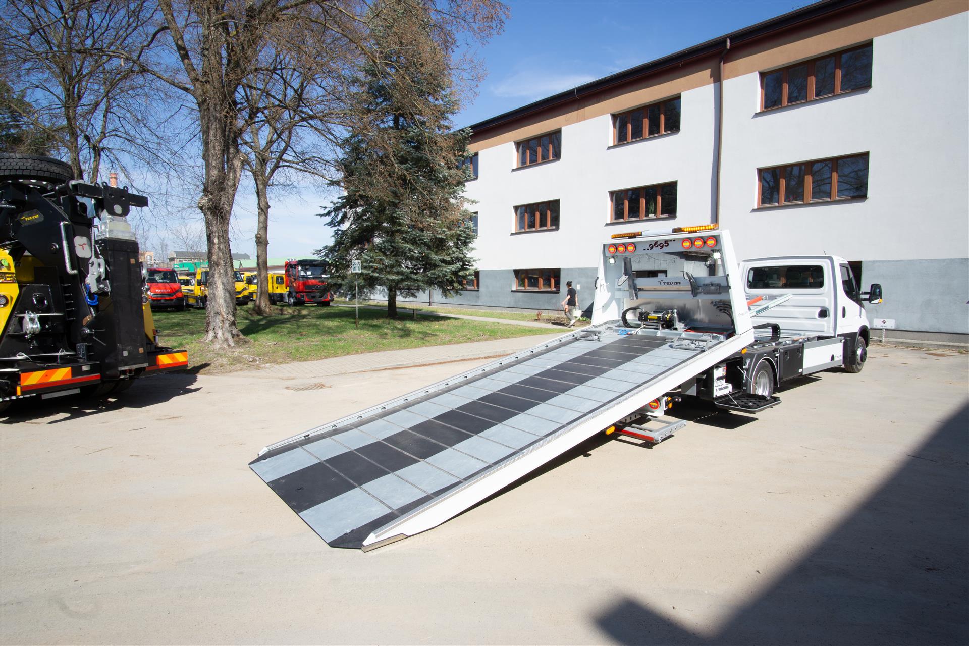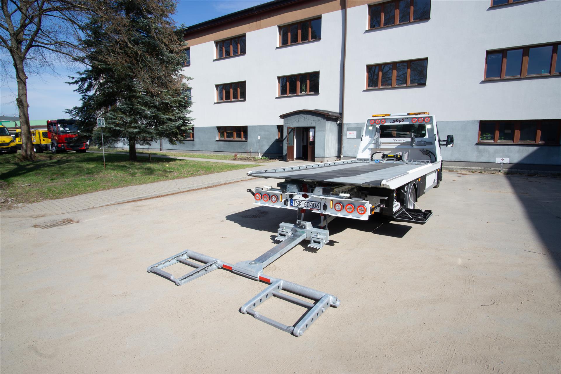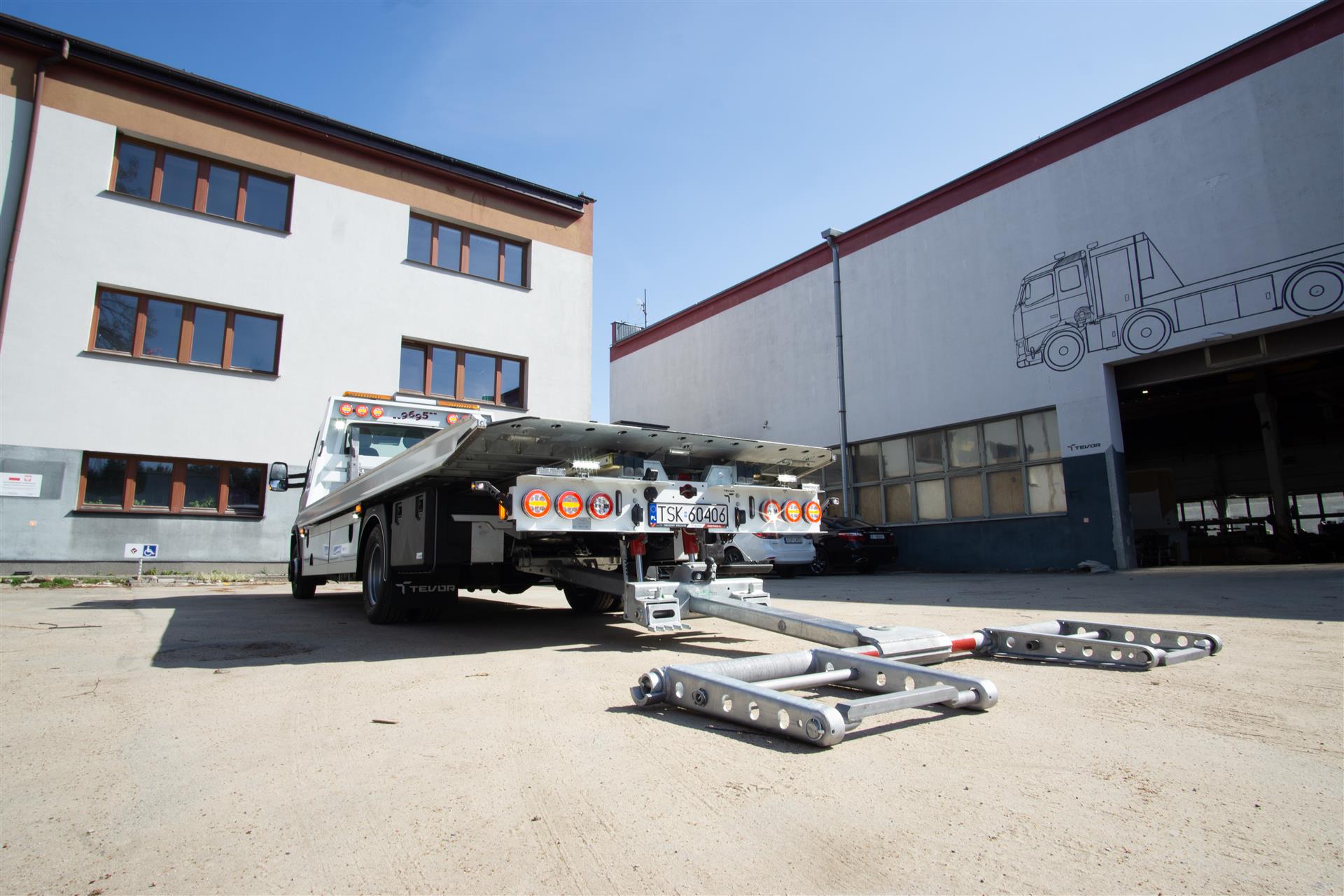 Platforma uchylana i zsuwana tylną krawędzią do podłoża za pomocą siłowników hydraulicznych. Platforma o konstrukcji panelowej wykonana z poprzecznie ułożonych specjalnych profili stalowych o wysokiej jakości i wytrzymałości. Kształt platformy zapobiega przedostawaniu się płynów eksploatacyjnych z holowanych pojazdów do gruntu. Posiada znak CE (zgodny z normami Unii Europejskiej).
