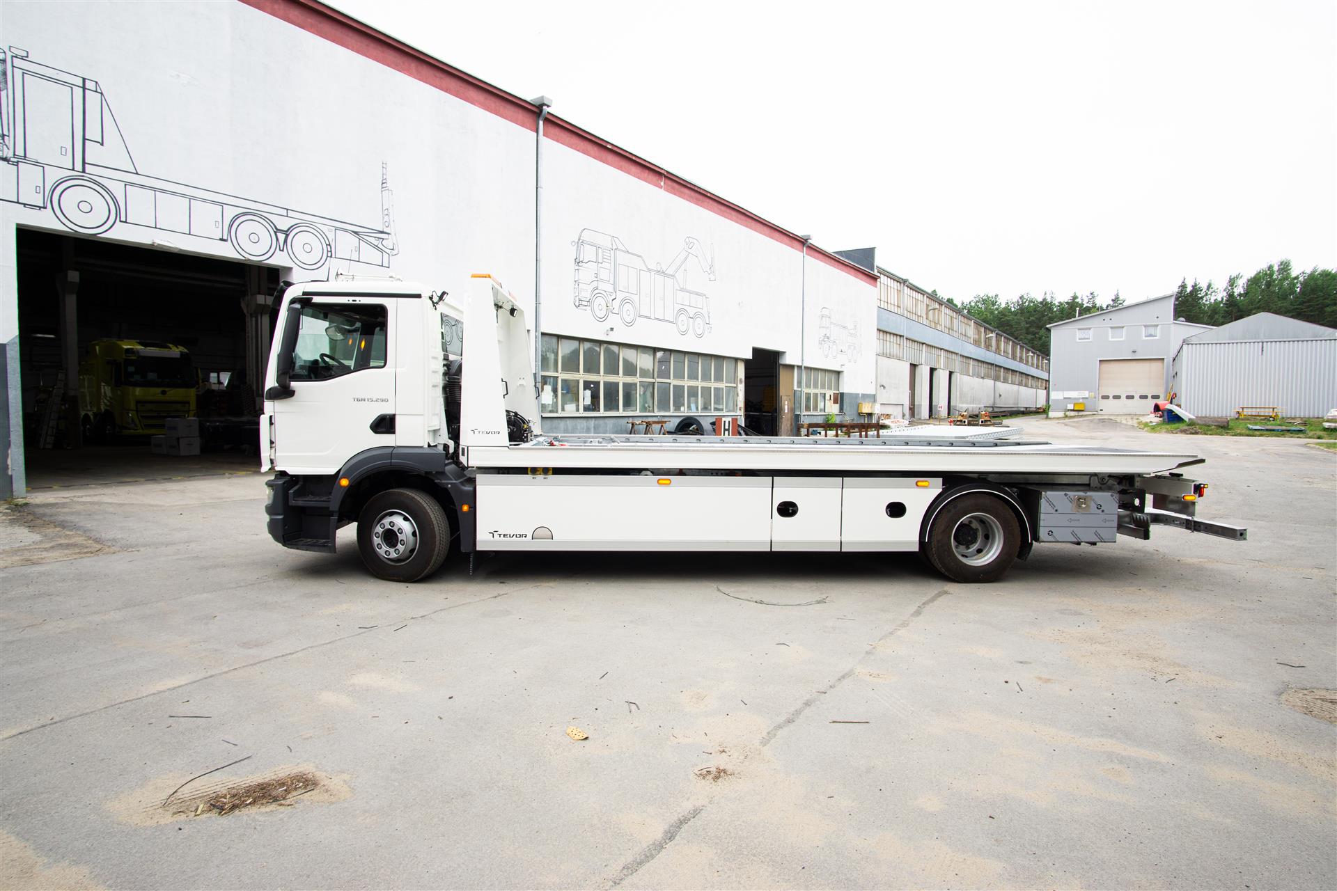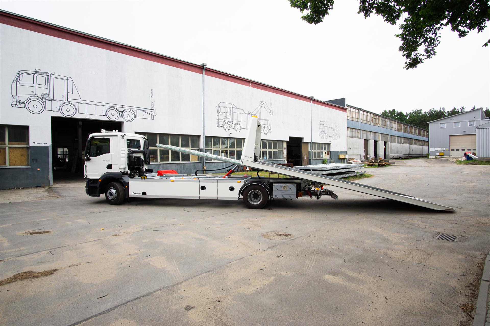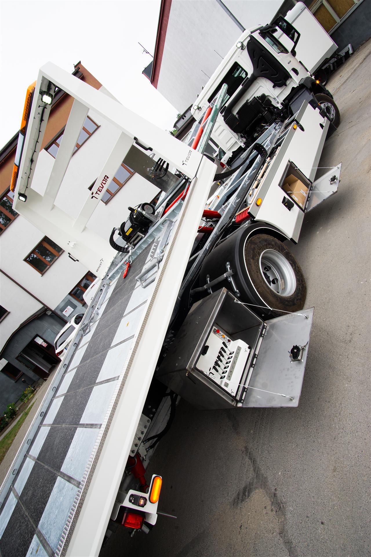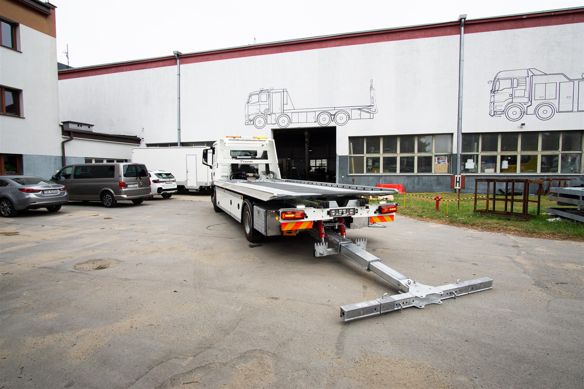 Platforma uchylana i zsuwana tylną krawędzią do podłoża za pomocą siłowników hydraulicznych. Platforma o konstrukcji panelowej wykonana z poprzecznie ułożonych specjalnych profili stalowych o wysokiej jakości i wytrzymałości. Kształt platformy zapobiega przedostawaniu się płynów eksploatacyjnych z holowanych pojazdów do gruntu. Posiada znak CE (zgodny z normami Unii Europejskiej).