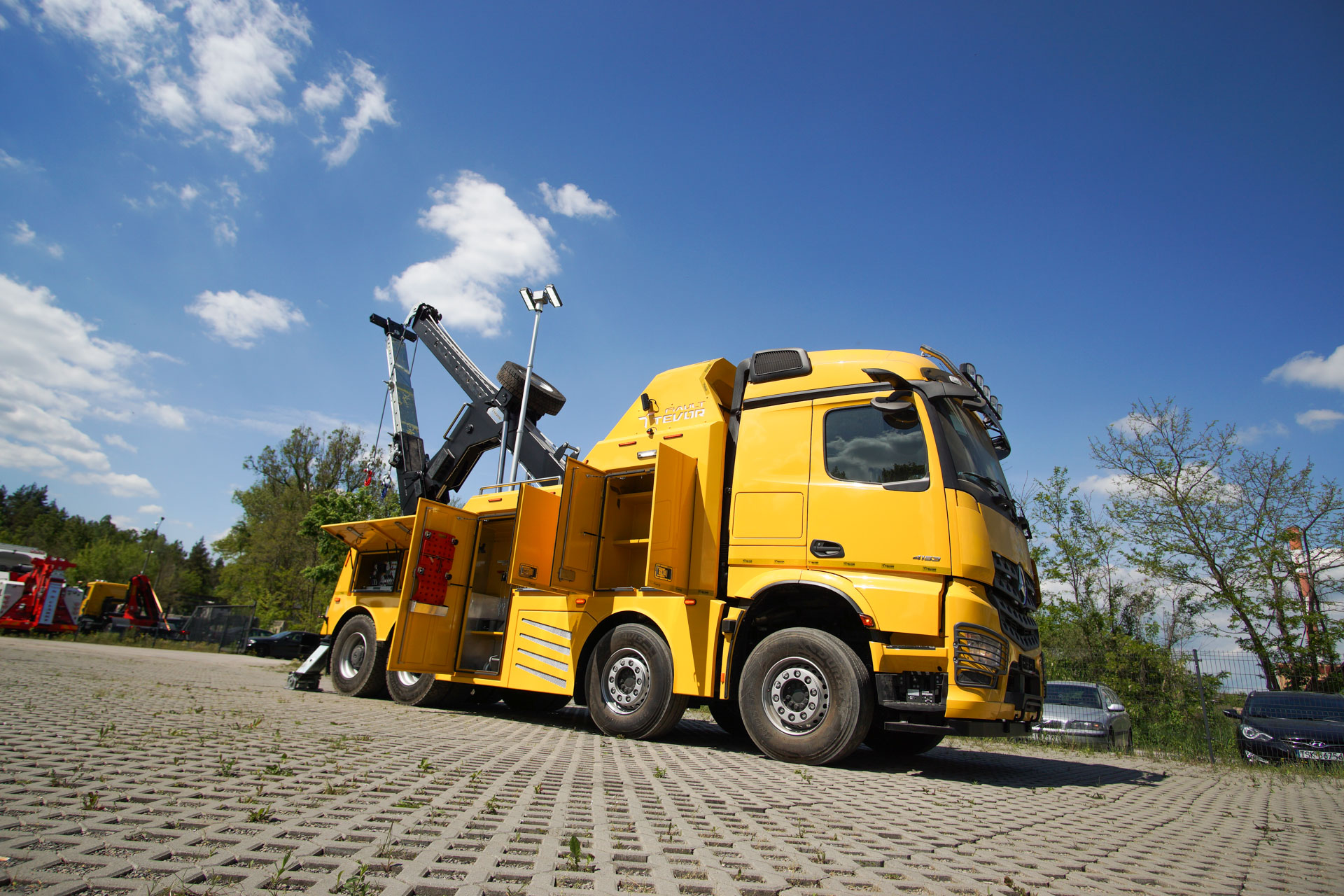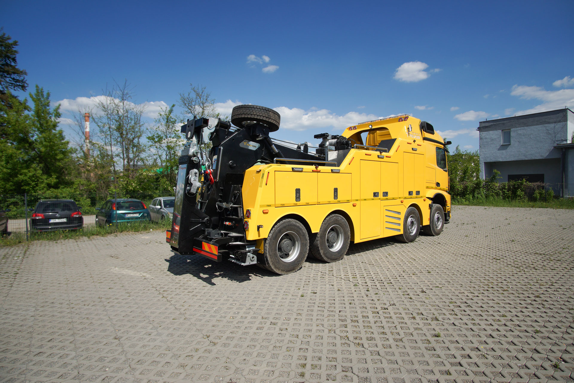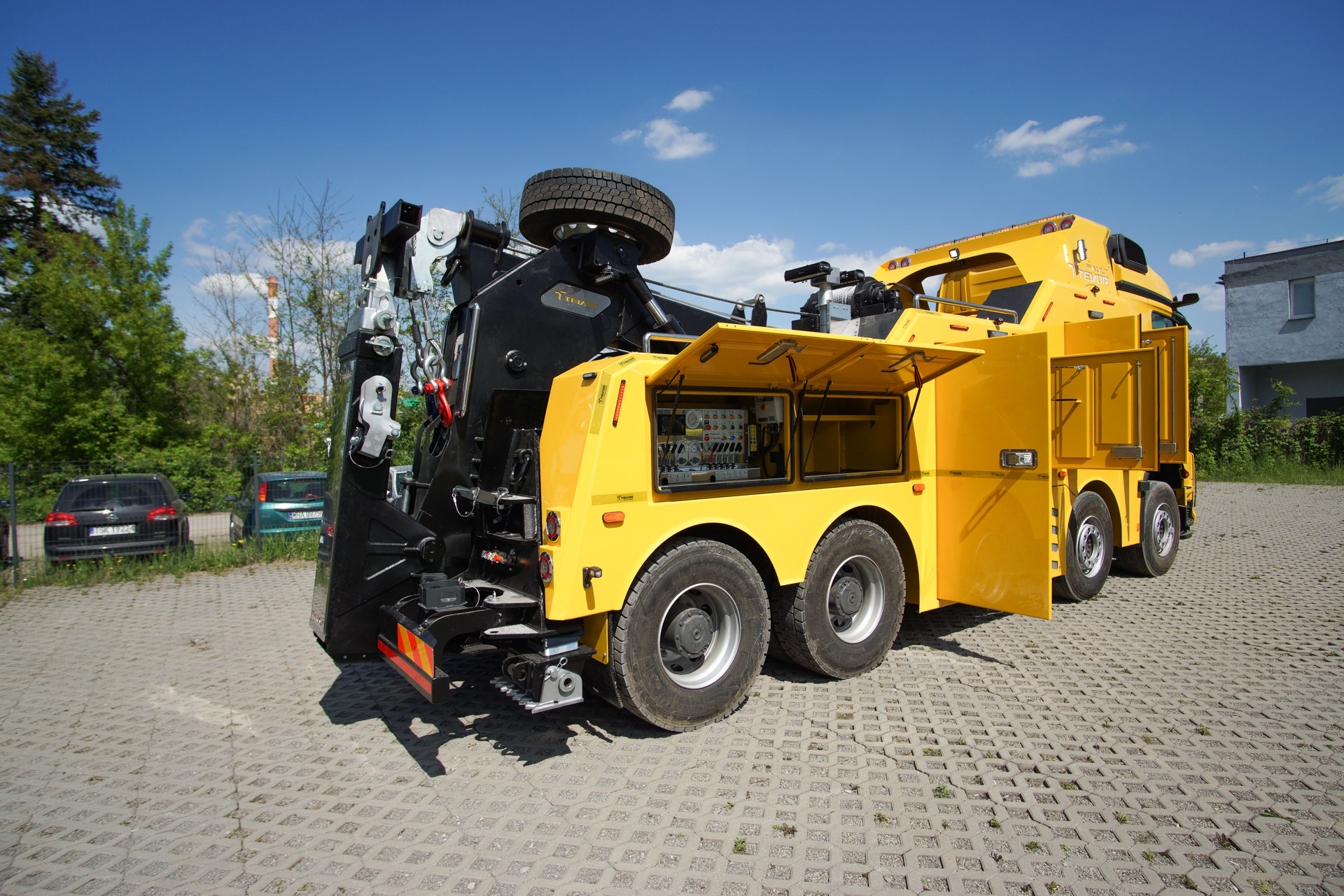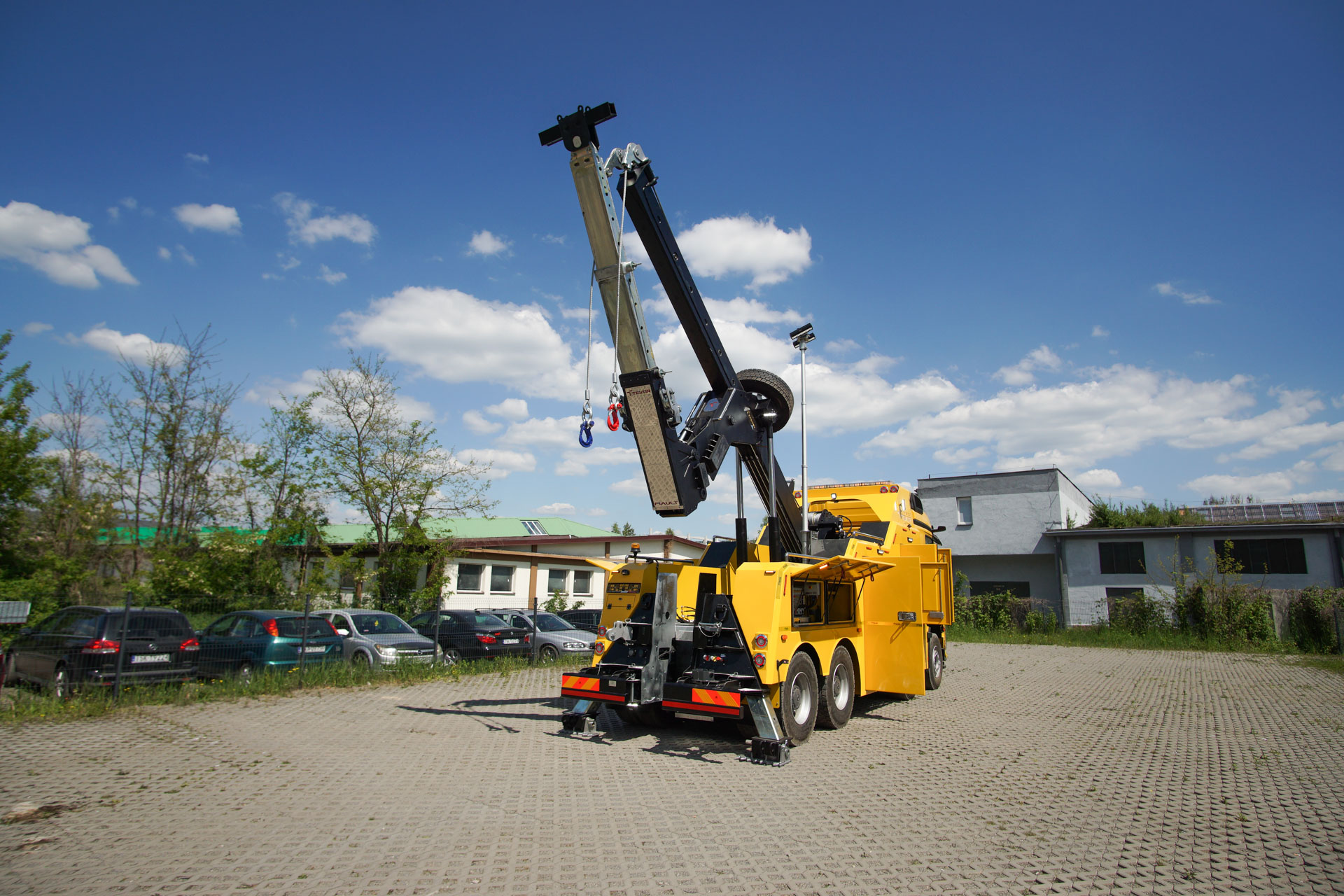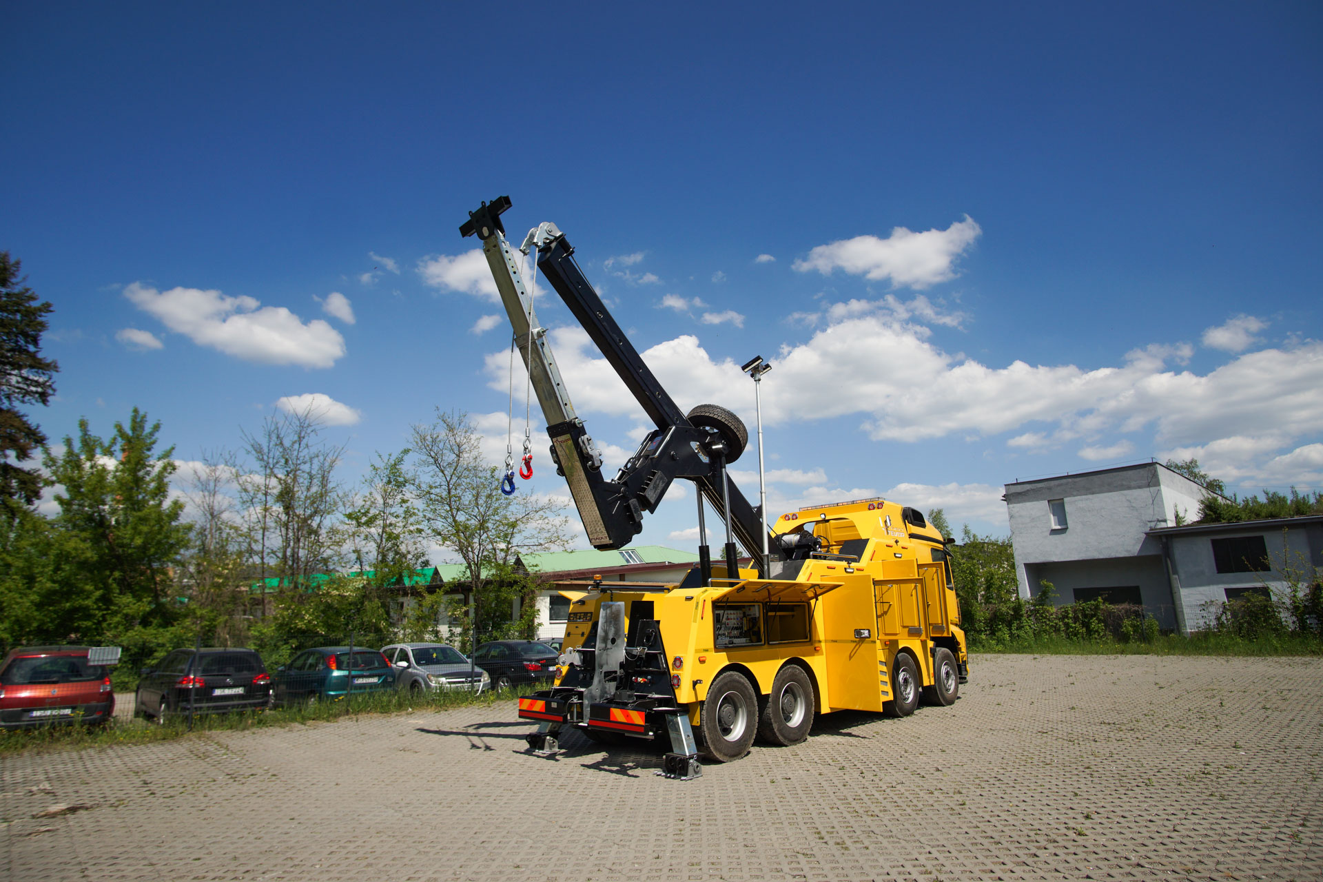Zabudowa holownicza do usuwania skutków wypadków drogowych z udziałem samochodów ciężarowych, autobusów, zestawów drogowych oraz ratownictwa drogowego. W tylnej części zamontowany wysięgnik holowniczy z podwójnym wysuwem hydraulicznym, regulowanym w trzech płaszczyznach zakończony wielofunkcyjną trawersą holowniczą z możliwością zamontowania dodatkowego osprzętu. Karoseria zabudowy z szafkami przeznaczonymi na dodatkowe wyposażenie: np. agregat prądotwórczy, kompresor, nożyce hydrauliczne, zestaw ratowniczy R1, moduły holownicze itp.