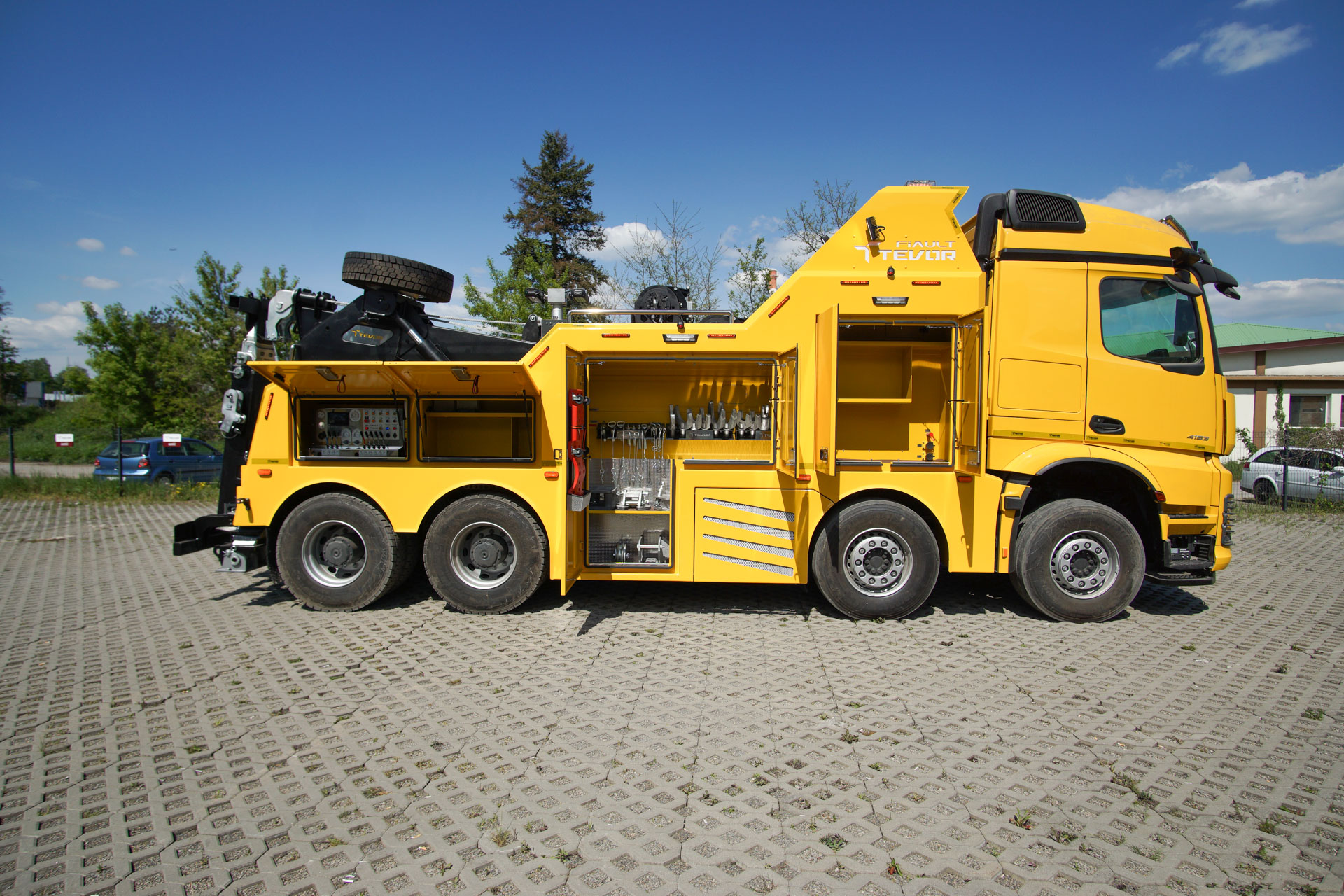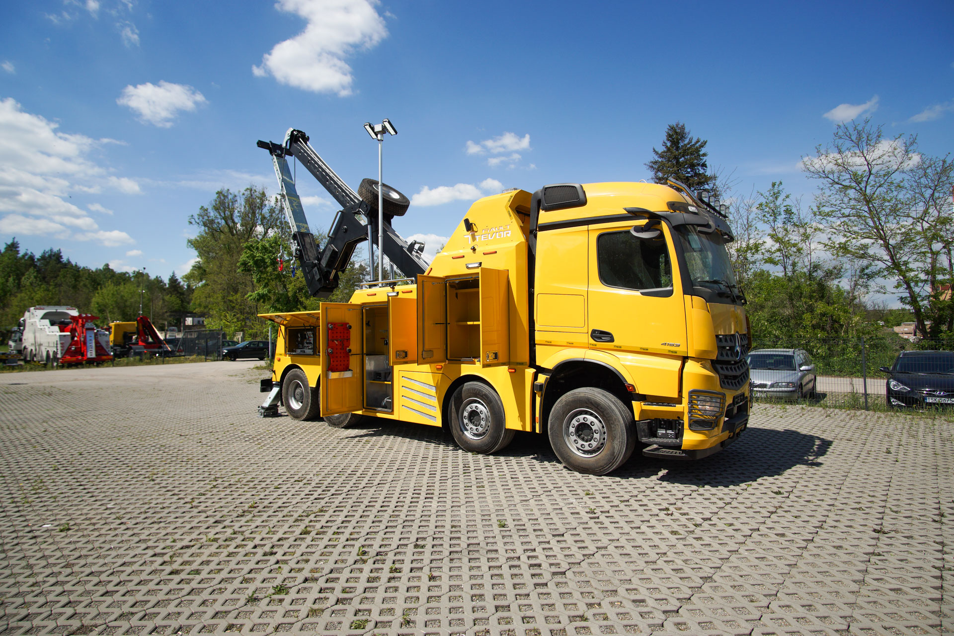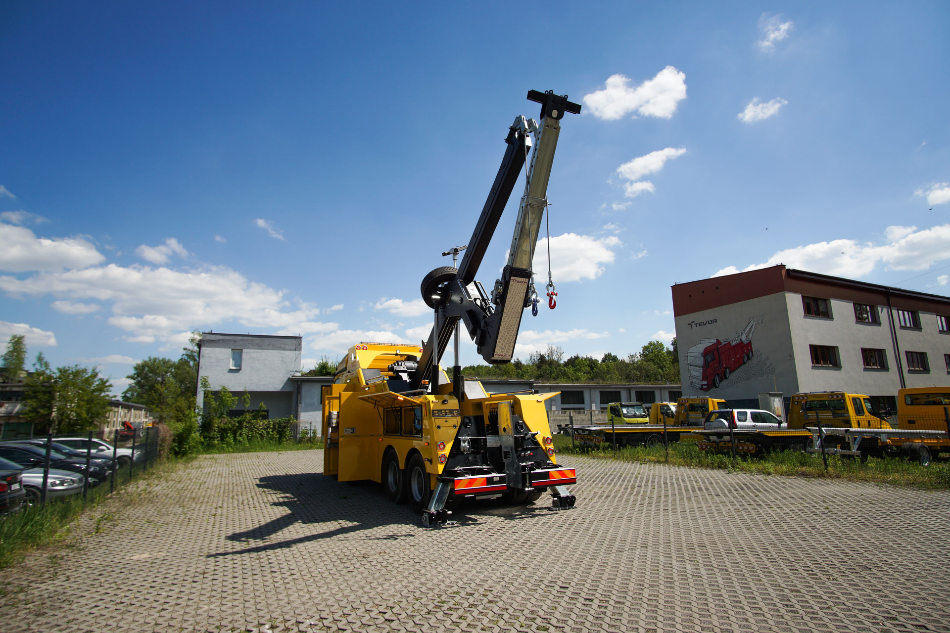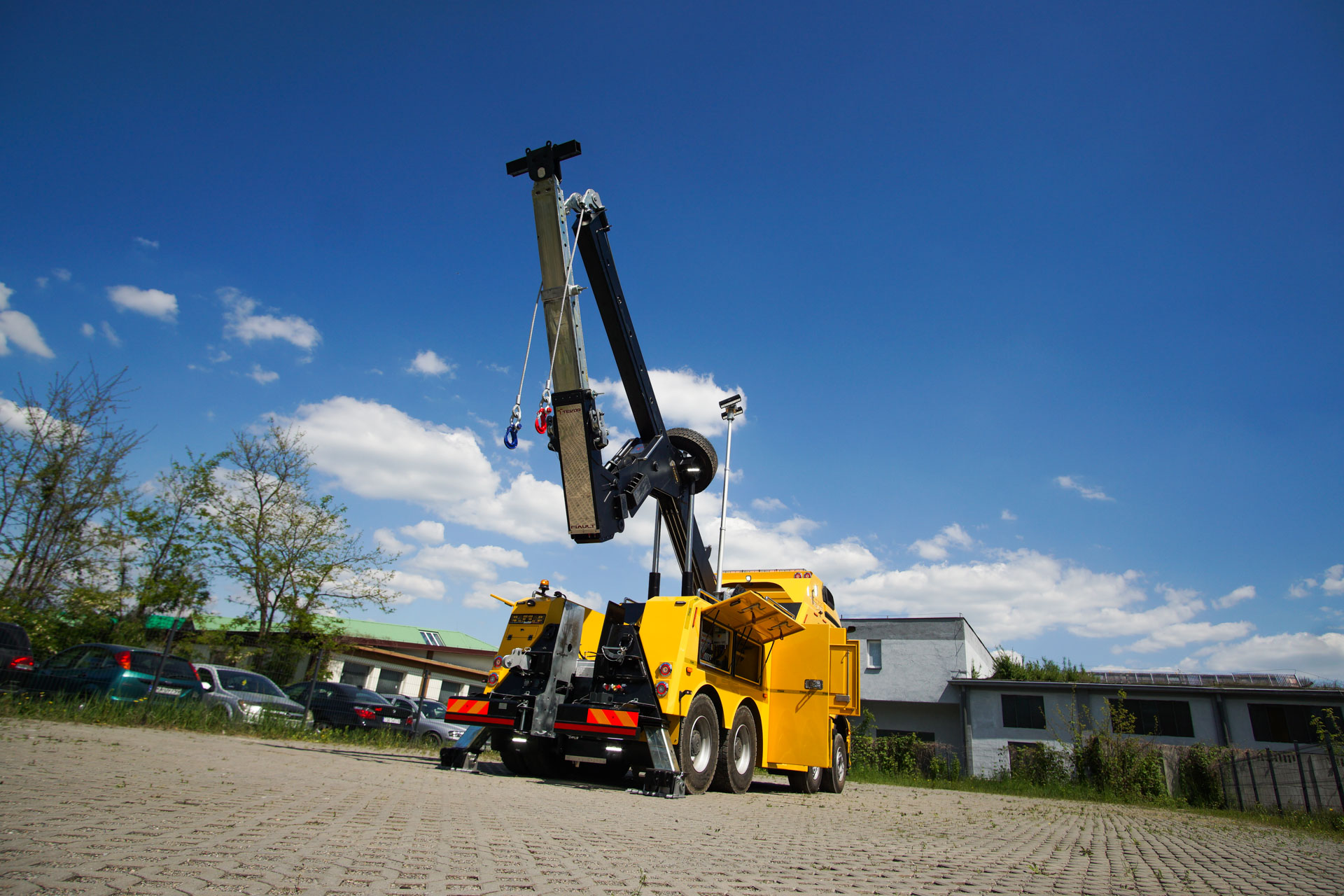 Zabudowa holownicza do usuwania skutków wypadków drogowych z udziałem samochodów ciężarowych, autobusów, zestawów drogowych oraz ratownictwa drogowego. W tylnej części zamontowany wysięgnik holowniczy z podwójnym wysuwem hydraulicznym, regulowanym w trzech płaszczyznach zakończony wielofunkcyjną trawersą holowniczą z możliwością zamontowania dodatkowego osprzętu. Karoseria zabudowy z szafkami przeznaczonymi na dodatkowe wyposażenie: np. agregat prądotwórczy, kompresor, nożyce hydrauliczne, zestaw ratowniczy R1, moduły holownicze itp.