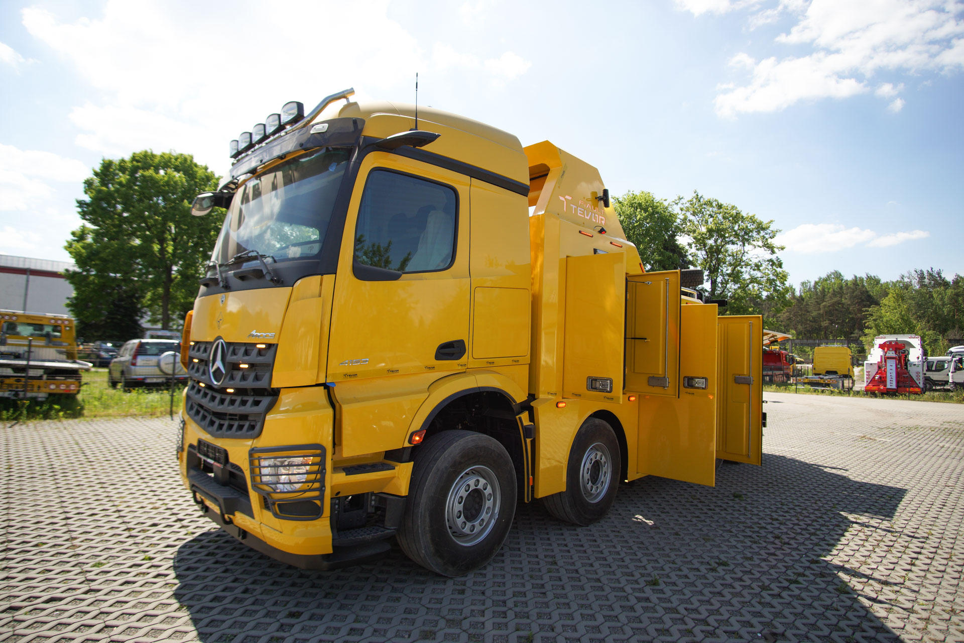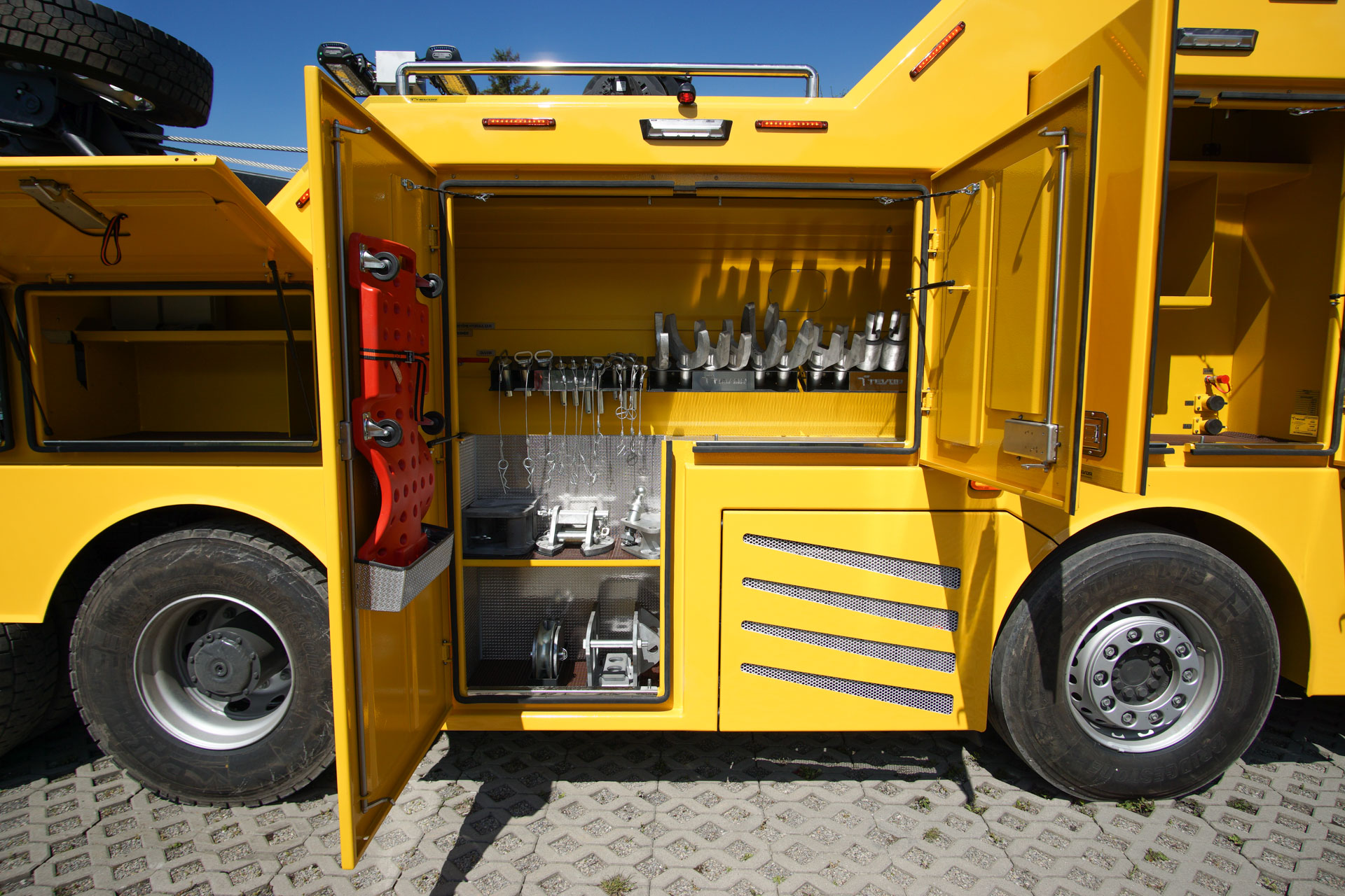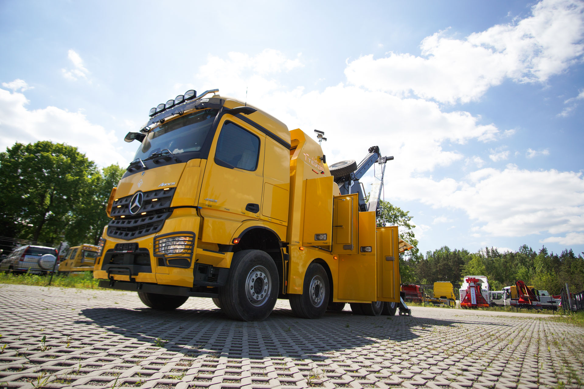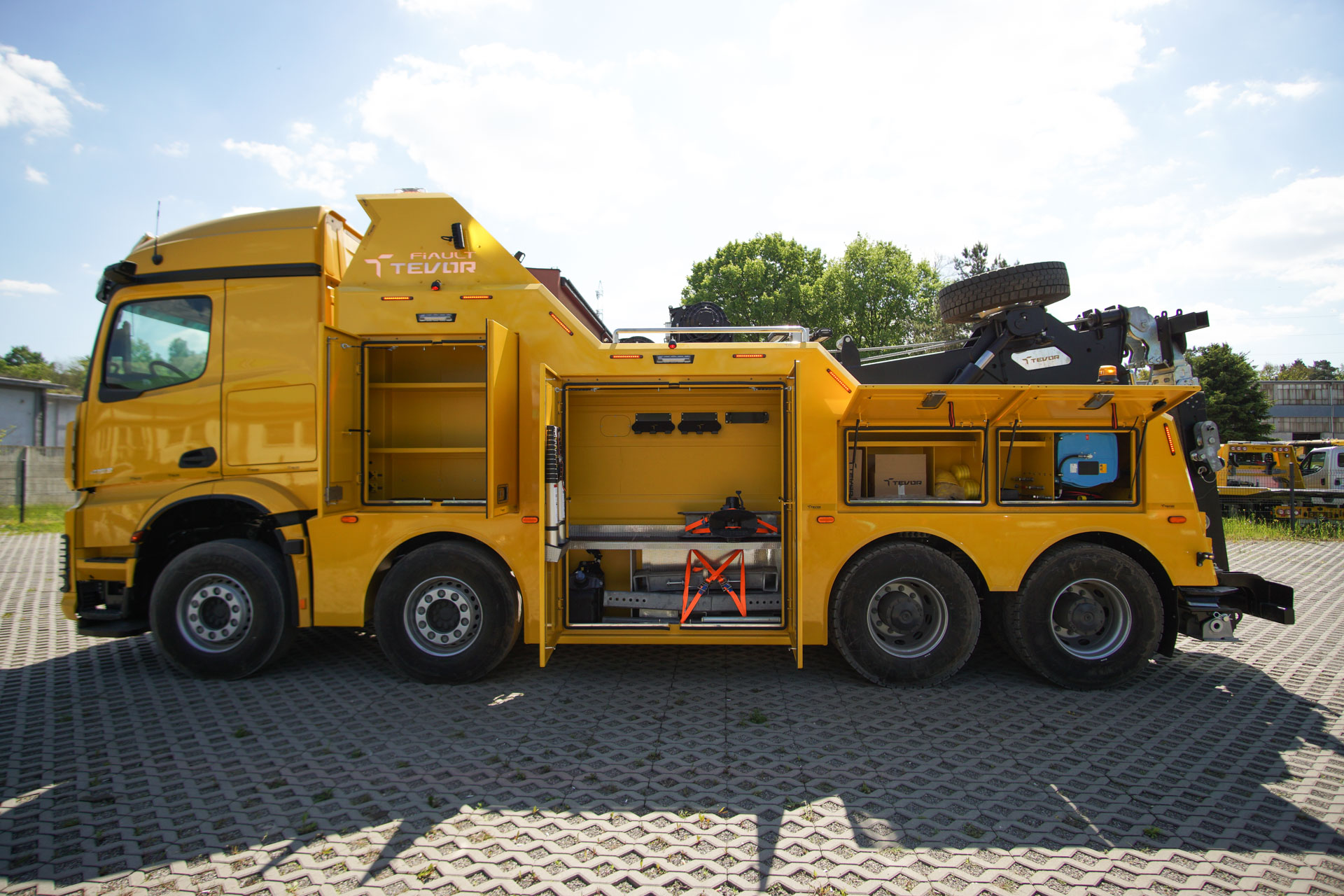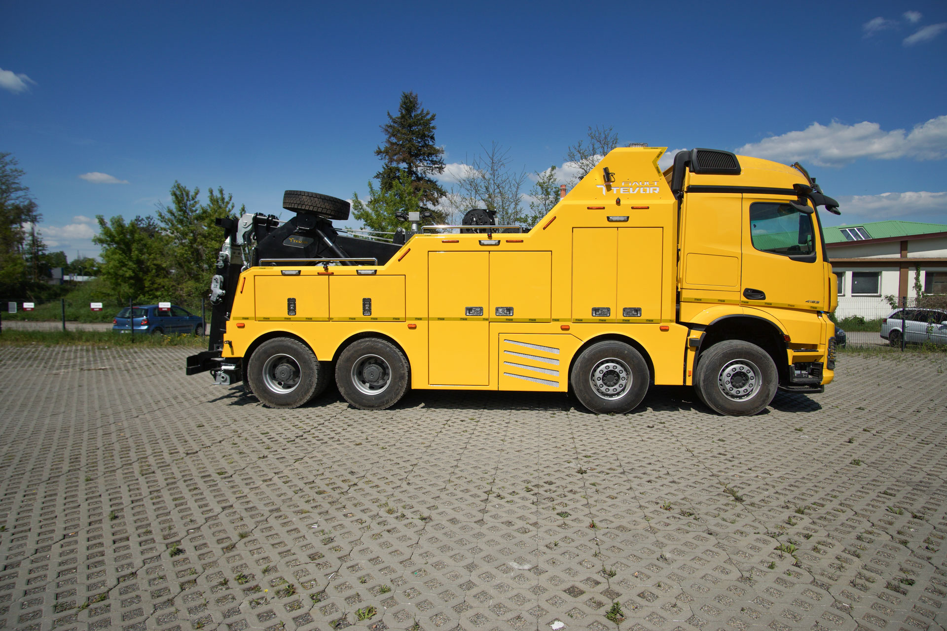 Zabudowa holownicza do usuwania skutków wypadków drogowych z udziałem samochodów ciężarowych, autobusów, zestawów drogowych oraz ratownictwa drogowego. W tylnej części zamontowany wysięgnik holowniczy z podwójnym wysuwem hydraulicznym, regulowanym w trzech płaszczyznach zakończony wielofunkcyjną trawersą holowniczą z możliwością zamontowania dodatkowego osprzętu. Karoseria zabudowy z szafkami przeznaczonymi na dodatkowe wyposażenie: np. agregat prądotwórczy, kompresor, nożyce hydrauliczne, zestaw ratowniczy R1, moduły holownicze itp.