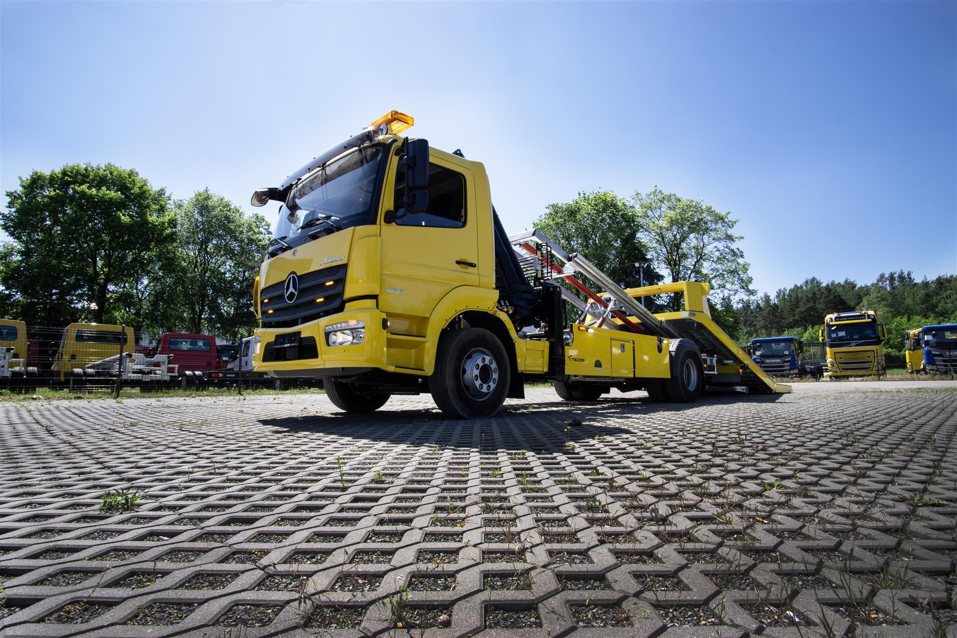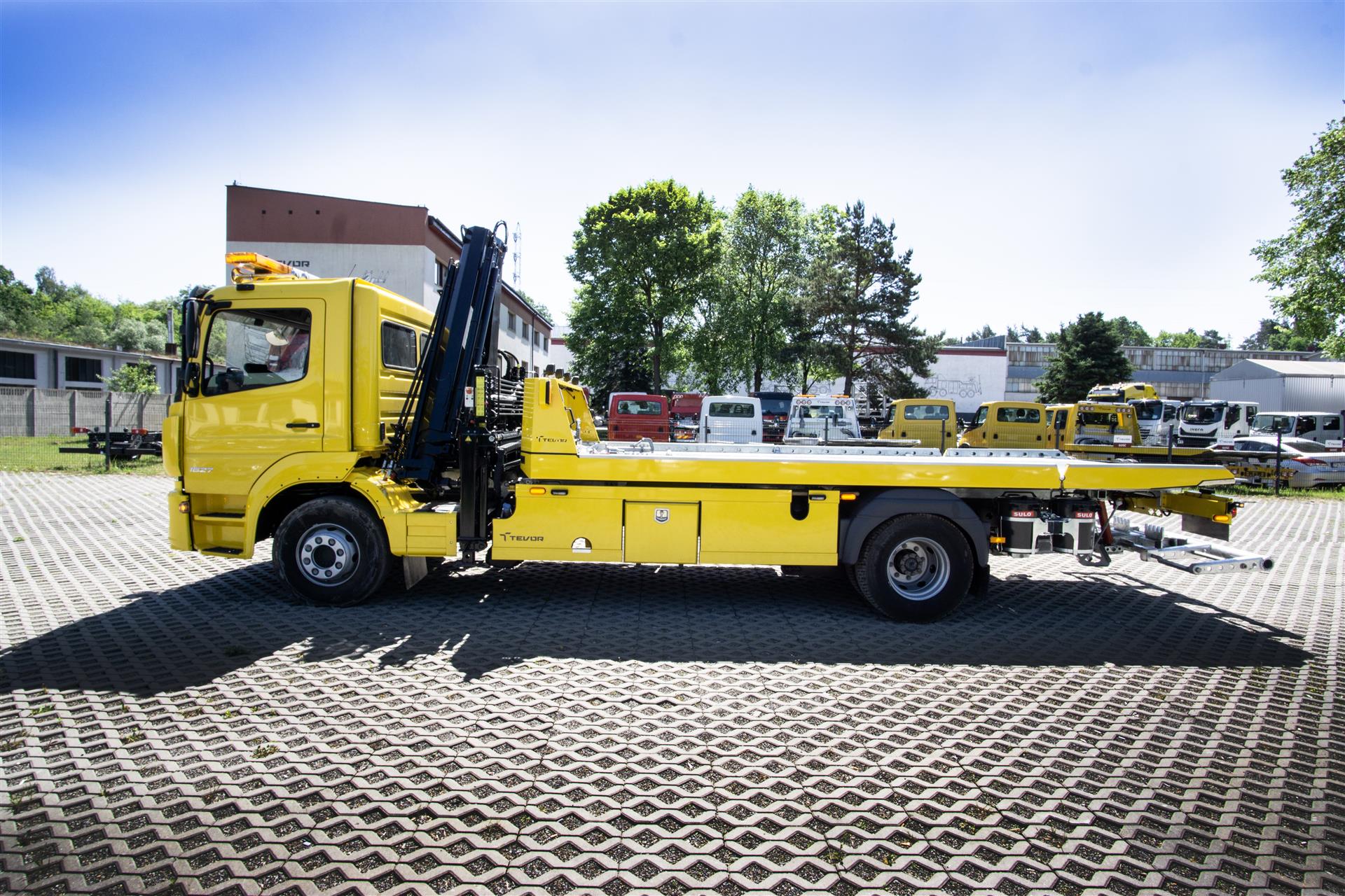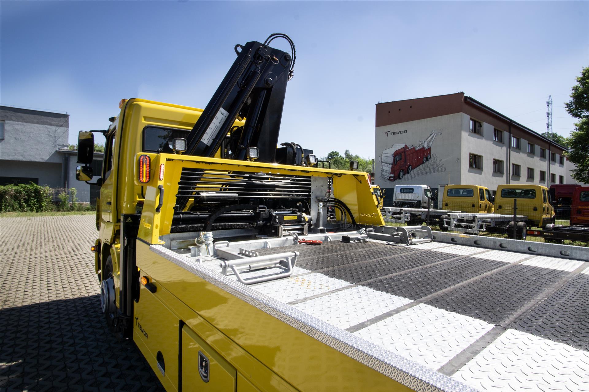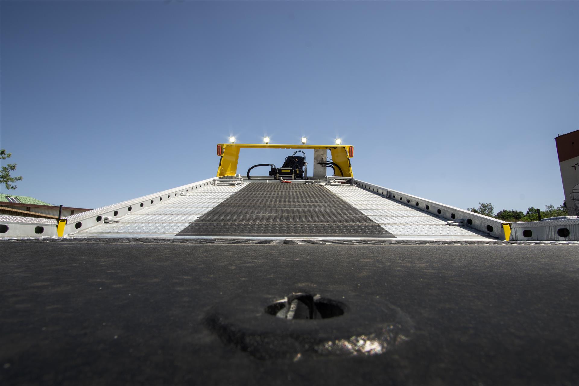 Platforma uchylana i zsuwana tylną krawędzią do podłoża za pomocą siłowników hydraulicznych. Platforma o konstrukcji panelowej wykonana z poprzecznie ułożonych specjalnych profili stalowych o wysokiej jakości i wytrzymałości. Kształt platformy zapobiega przedostawaniu się płynów eksploatacyjnych z holowanych pojazdów do gruntu. Posiada znak CE (zgodny z normami Unii Europejskiej).