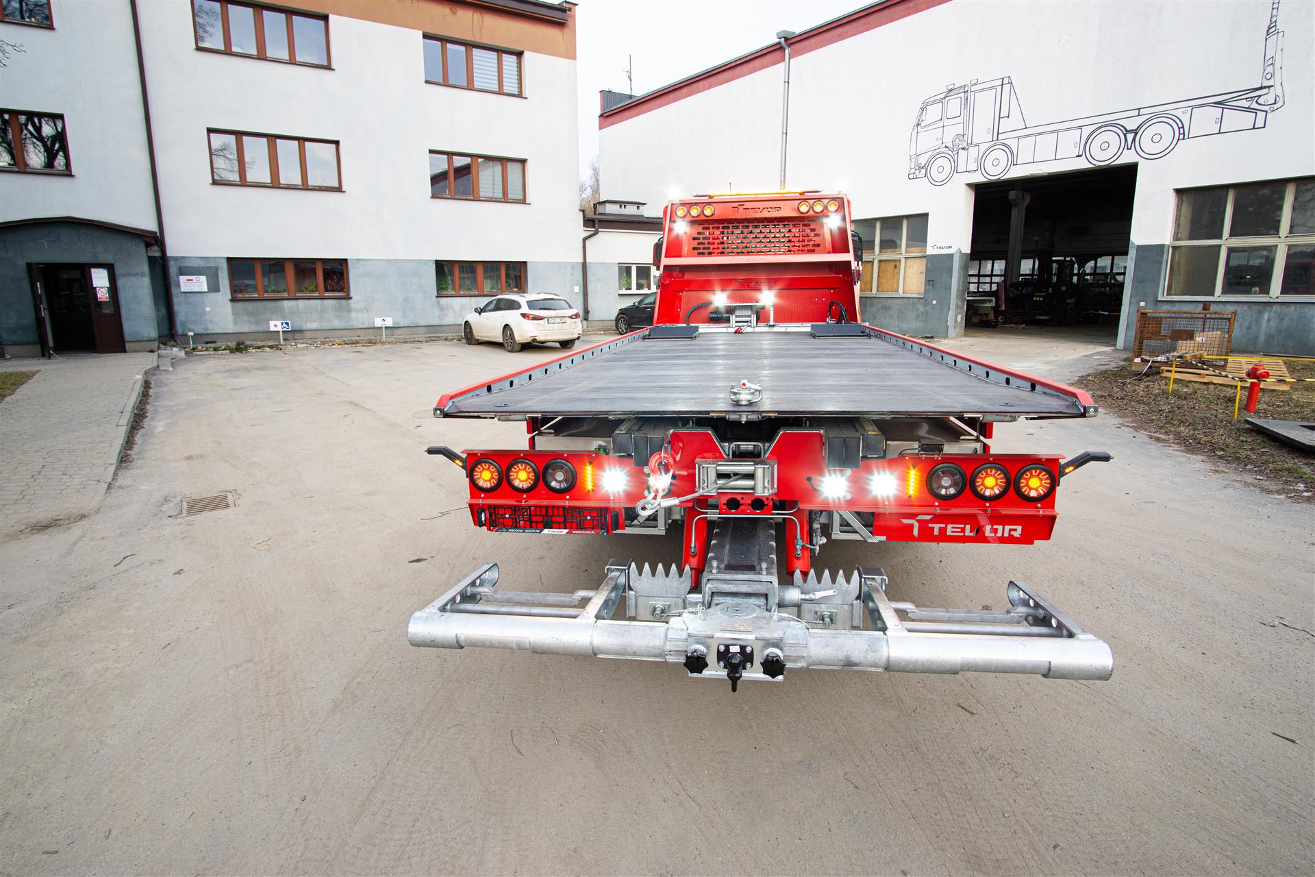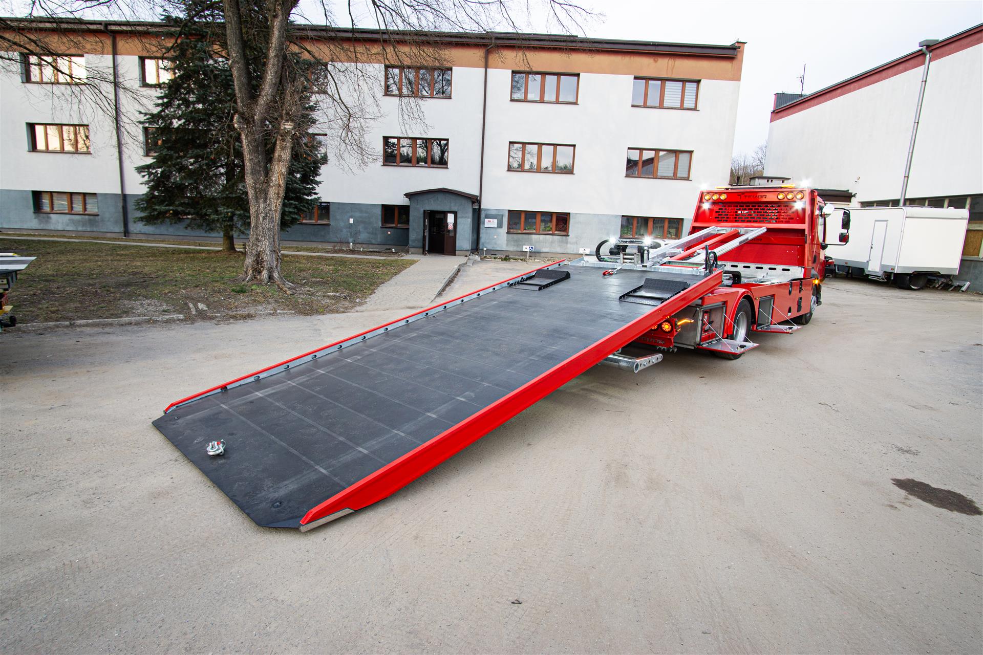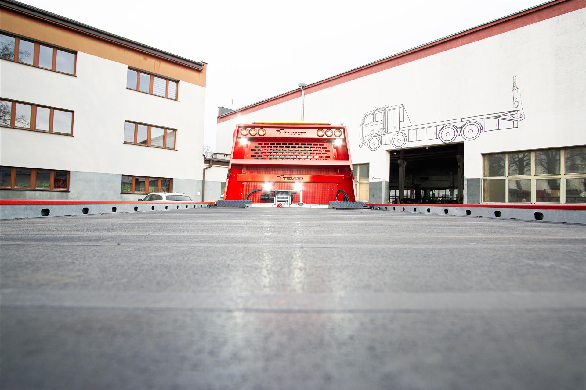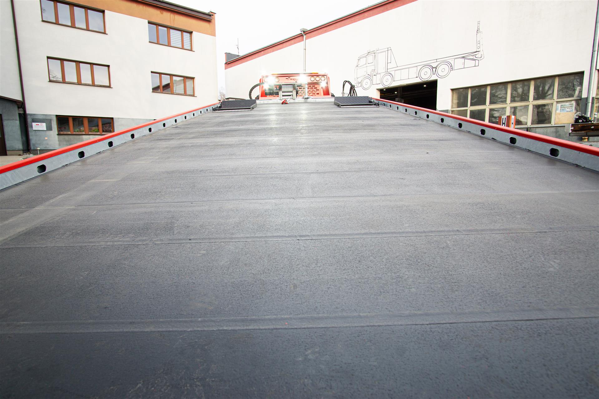 Platforma uchylana i zsuwana tylną krawędzią do podłoża za pomocą siłowników hydraulicznych. Platforma o konstrukcji panelowej wykonana z poprzecznie ułożonych specjalnych profili stalowych o wysokiej jakości i wytrzymałości. Kształt platformy zapobiega przedostawaniu się płynów eksploatacyjnych z holowanych pojazdów do gruntu. Posiada znak CE (zgodny z normami Unii Europejskiej).