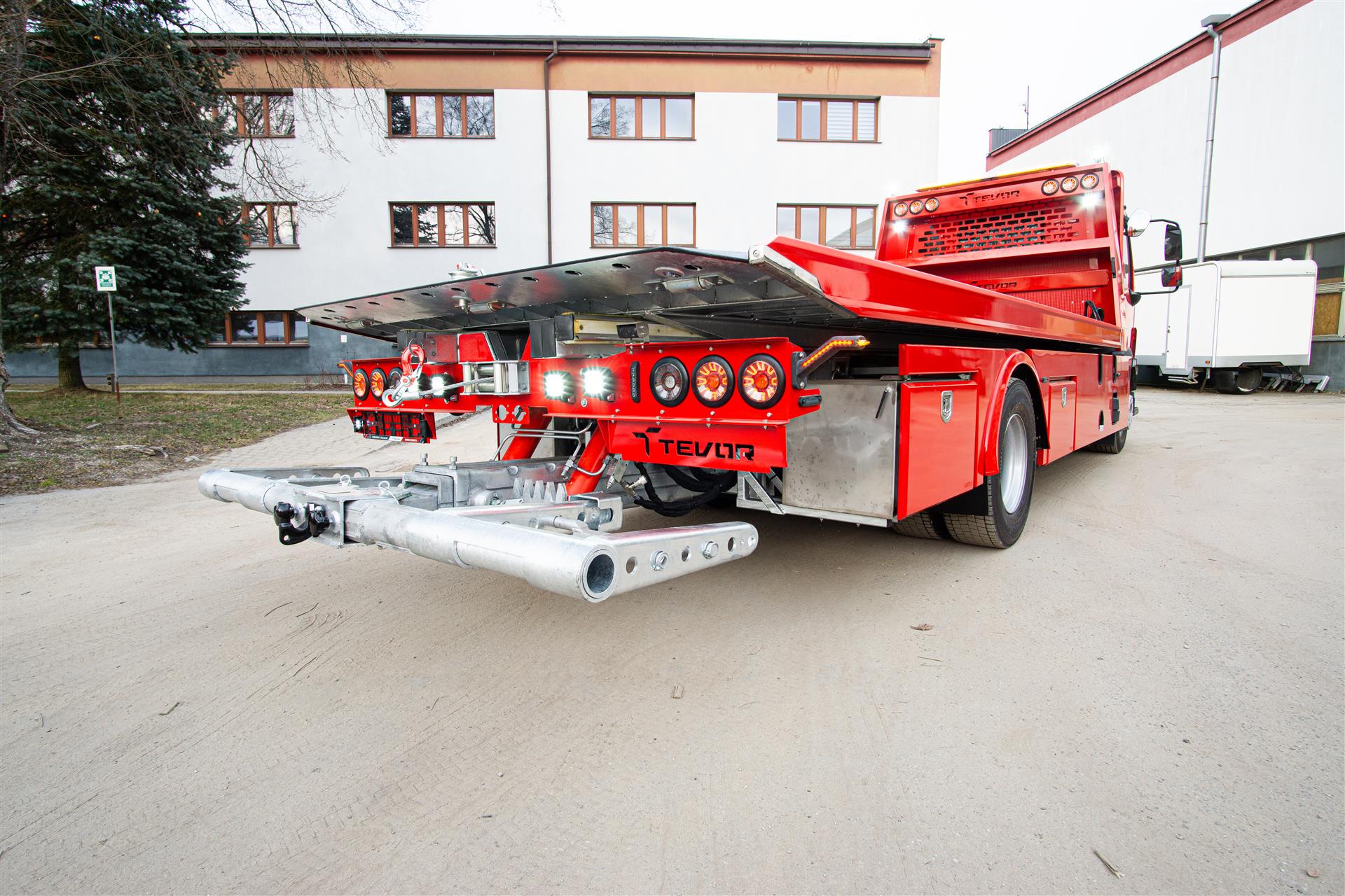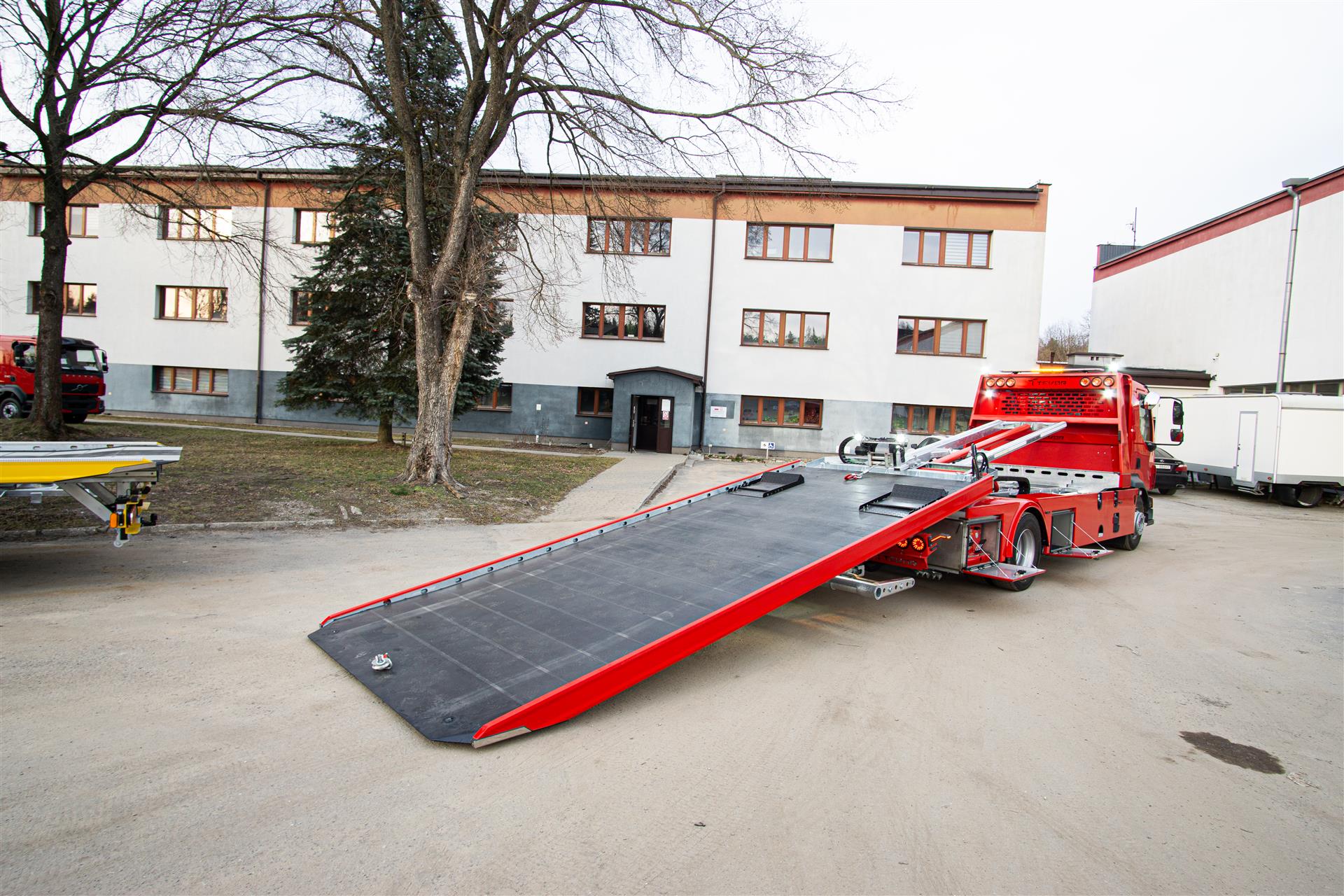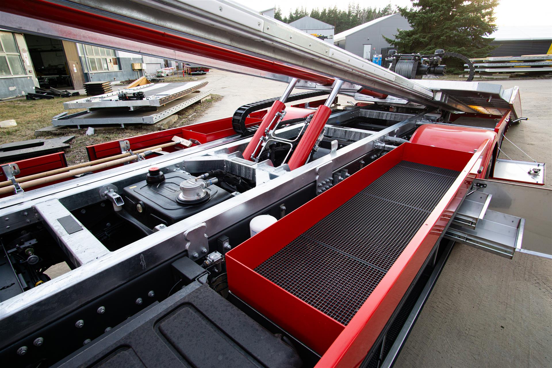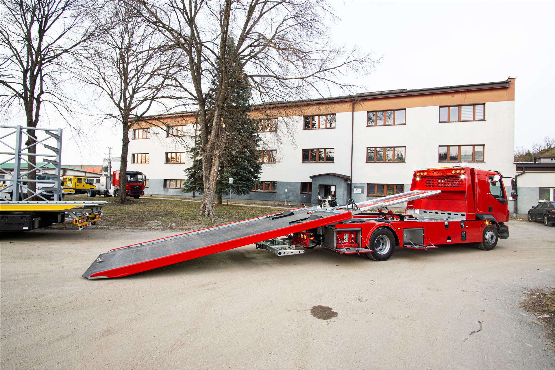 Platforma uchylana i zsuwana tylną krawędzią do podłoża za pomocą siłowników hydraulicznych. Platforma o konstrukcji panelowej wykonana z poprzecznie ułożonych specjalnych profili stalowych o wysokiej jakości i wytrzymałości. Kształt platformy zapobiega przedostawaniu się płynów eksploatacyjnych z holowanych pojazdów do gruntu. Posiada znak CE (zgodny z normami Unii Europejskiej).