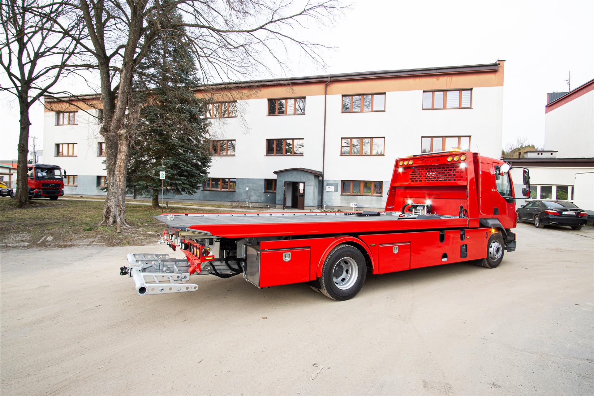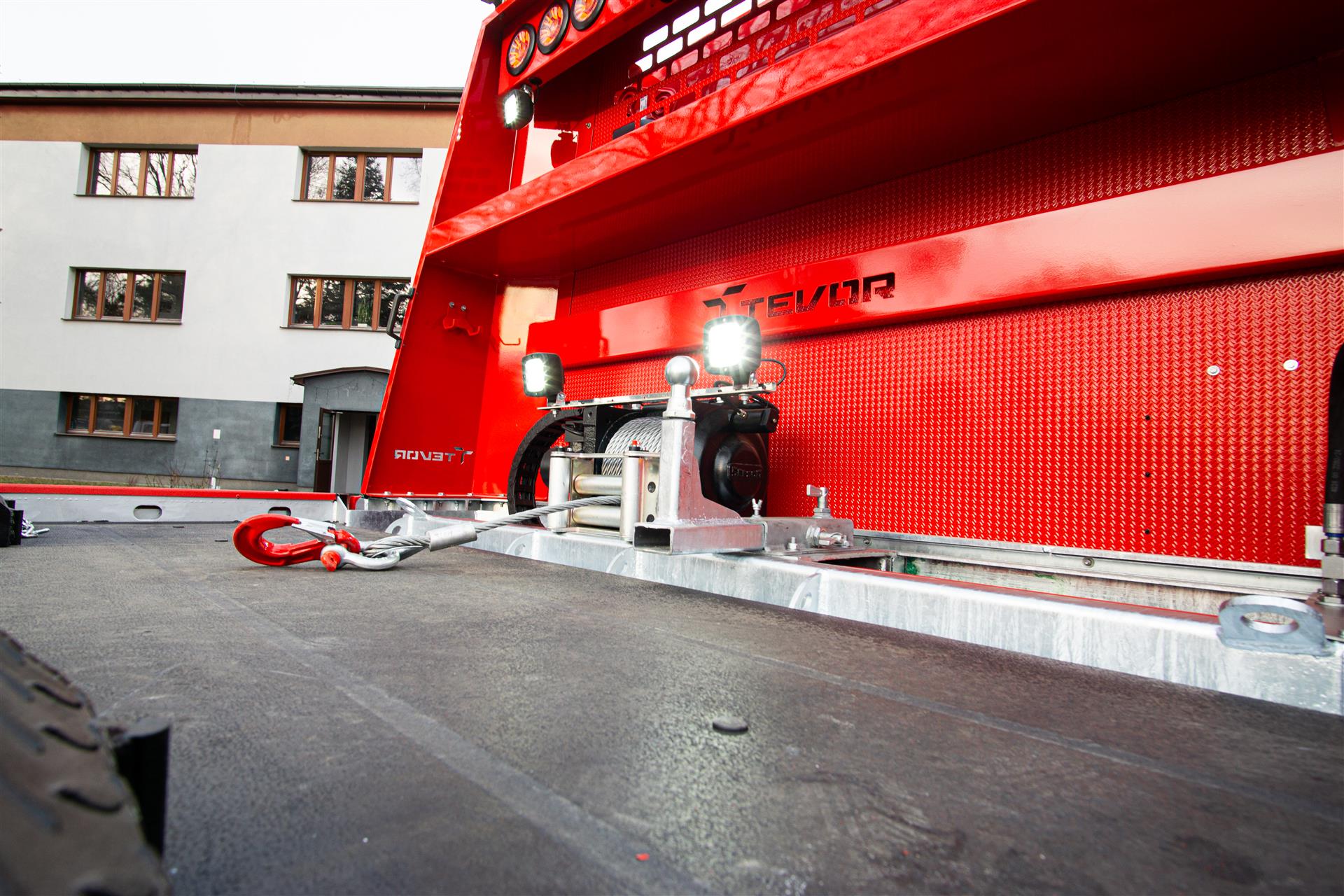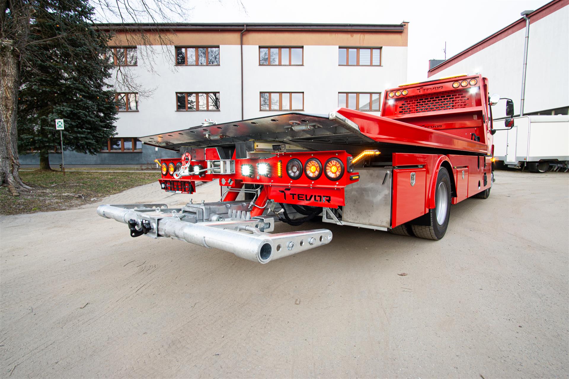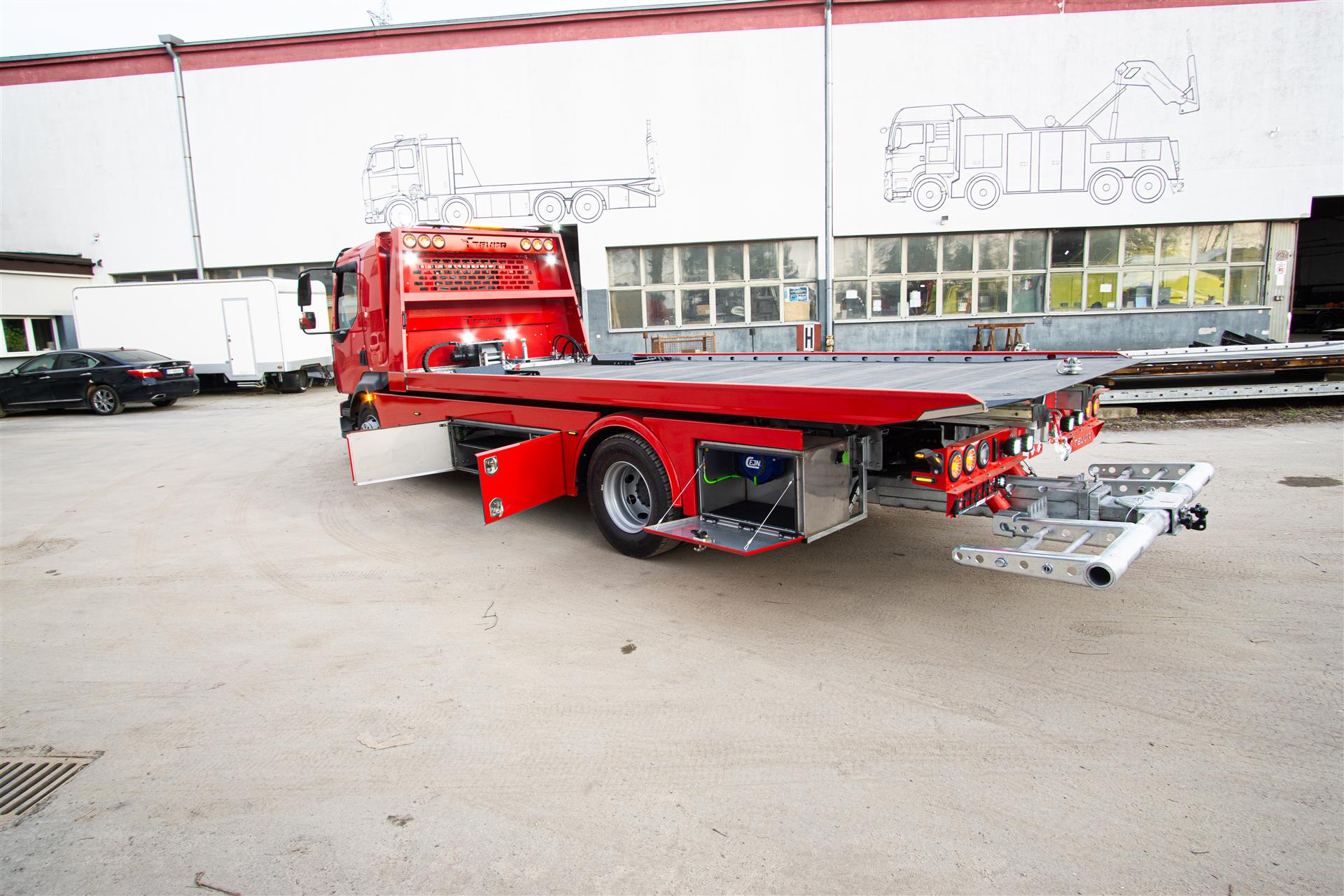 Platforma uchylana i zsuwana tylną krawędzią do podłoża za pomocą siłowników hydraulicznych. Platforma o konstrukcji panelowej wykonana z poprzecznie ułożonych specjalnych profili stalowych o wysokiej jakości i wytrzymałości. Kształt platformy zapobiega przedostawaniu się płynów eksploatacyjnych z holowanych pojazdów do gruntu. Posiada znak CE (zgodny z normami Unii Europejskiej).