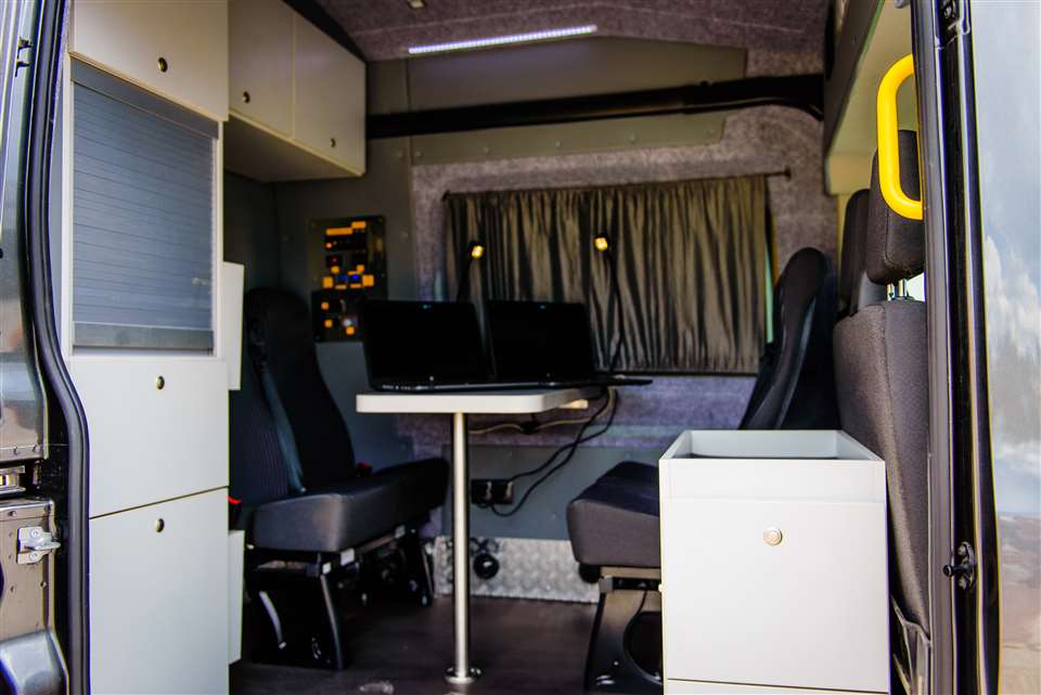 Laboratorium wykonane na bazie furgonu. Składa się z trzech części: kabiny kierowcy, przedziału operacyjnego i technicznego, które są wykonane zgodnie z wytycznymi zamawiającego. Przedział operacyjny może być wyposażony w zabudowę biurową, niezależne ogrzewanie i wentylację, wysuwane kamery oraz jednostkę centralną. W przedziale technicznym znajdują się urządzenia do realizacji zadań laboratorium, inwenter, generator prądotwórczy i inne. Posiada znak CE (zgodny z normami Unii Europejskiej).