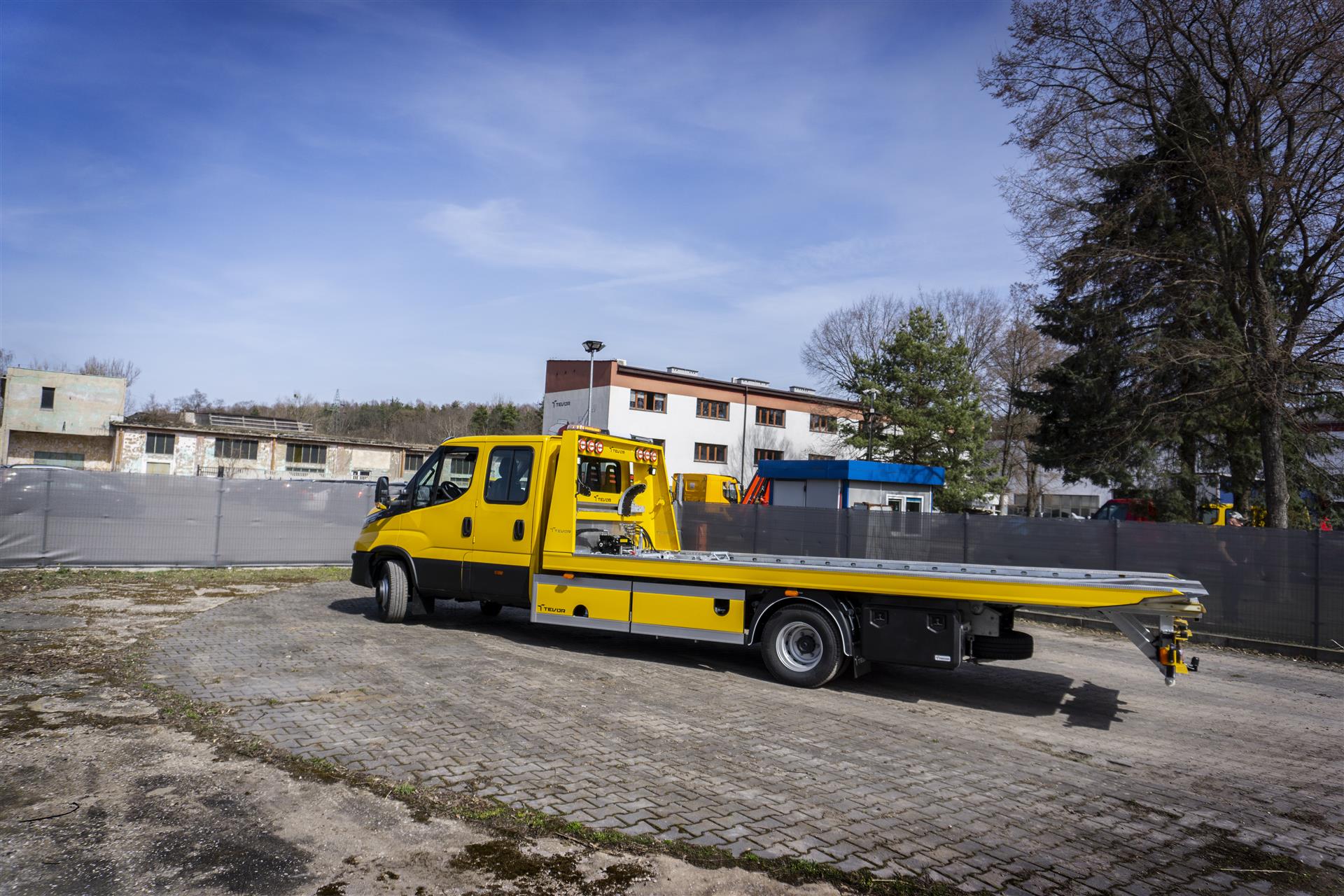 Platforma uchylana i zsuwana tylną krawędzią do podłoża za pomocą siłowników hydraulicznych. Platforma o konstrukcji panelowej wykonana z poprzecznie ułożonych specjalnych profili stalowych o wysokiej jakości i wytrzymałości. Kształt platformy zapobiega przedostawaniu się płynów eksploatacyjnych z holowanych pojazdów do gruntu. Posiada znak CE (zgodny z normami Unii Europejskiej).