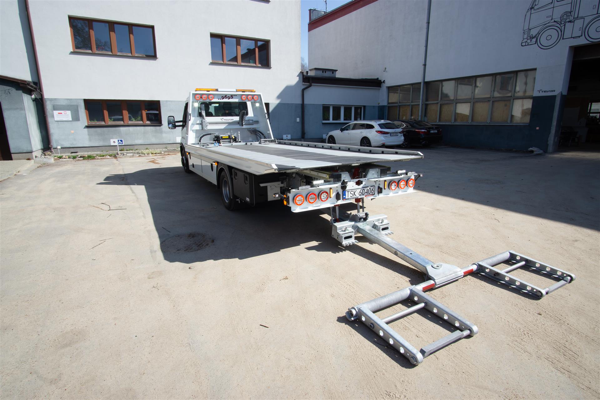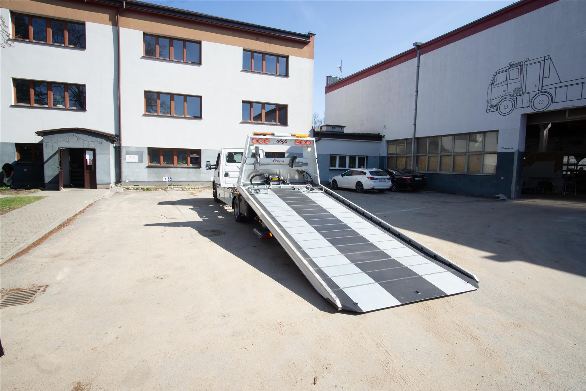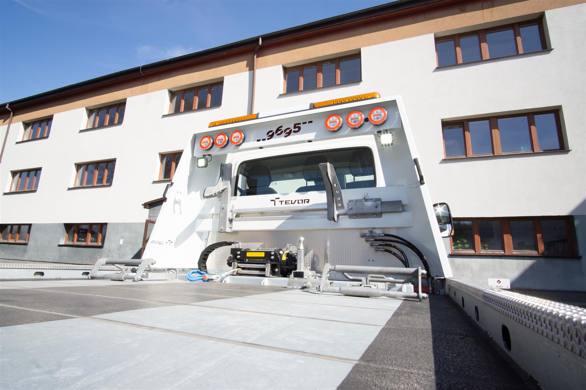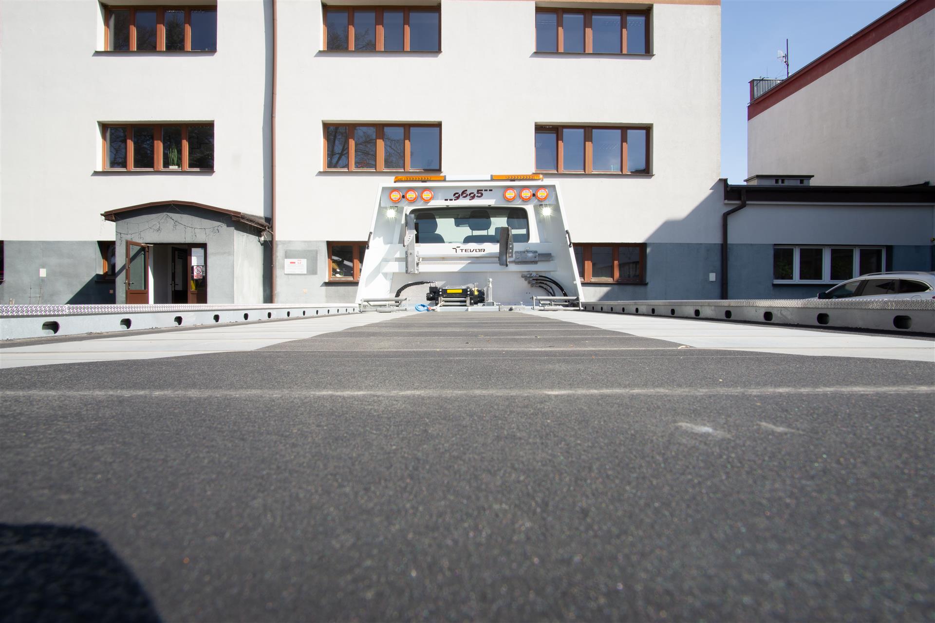 Platforma uchylana i zsuwana tylną krawędzią do podłoża za pomocą siłowników hydraulicznych. Platforma o konstrukcji panelowej wykonana z poprzecznie ułożonych specjalnych profili stalowych o wysokiej jakości i wytrzymałości. Kształt platformy zapobiega przedostawaniu się płynów eksploatacyjnych z holowanych pojazdów do gruntu. Posiada znak CE (zgodny z normami Unii Europejskiej).
