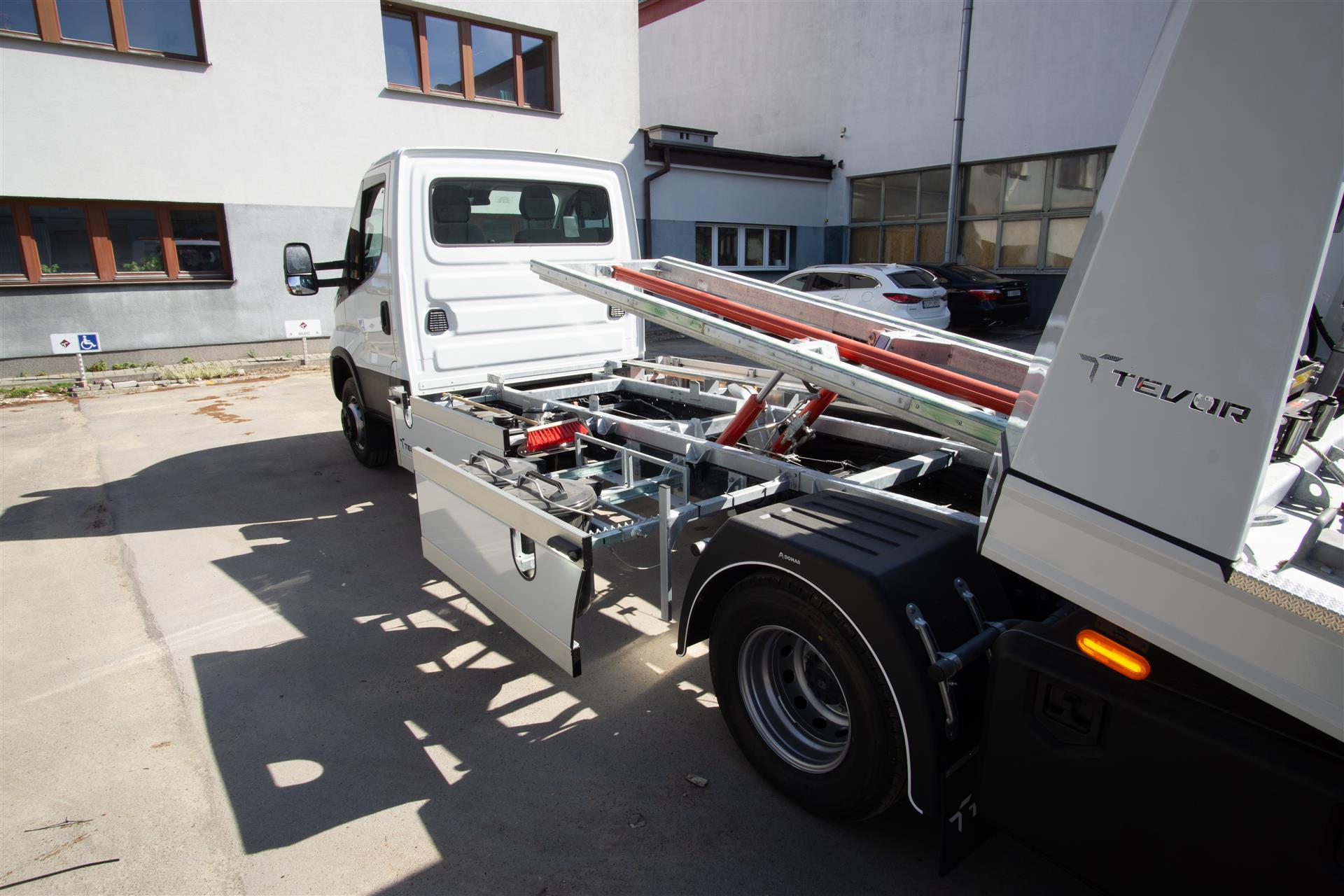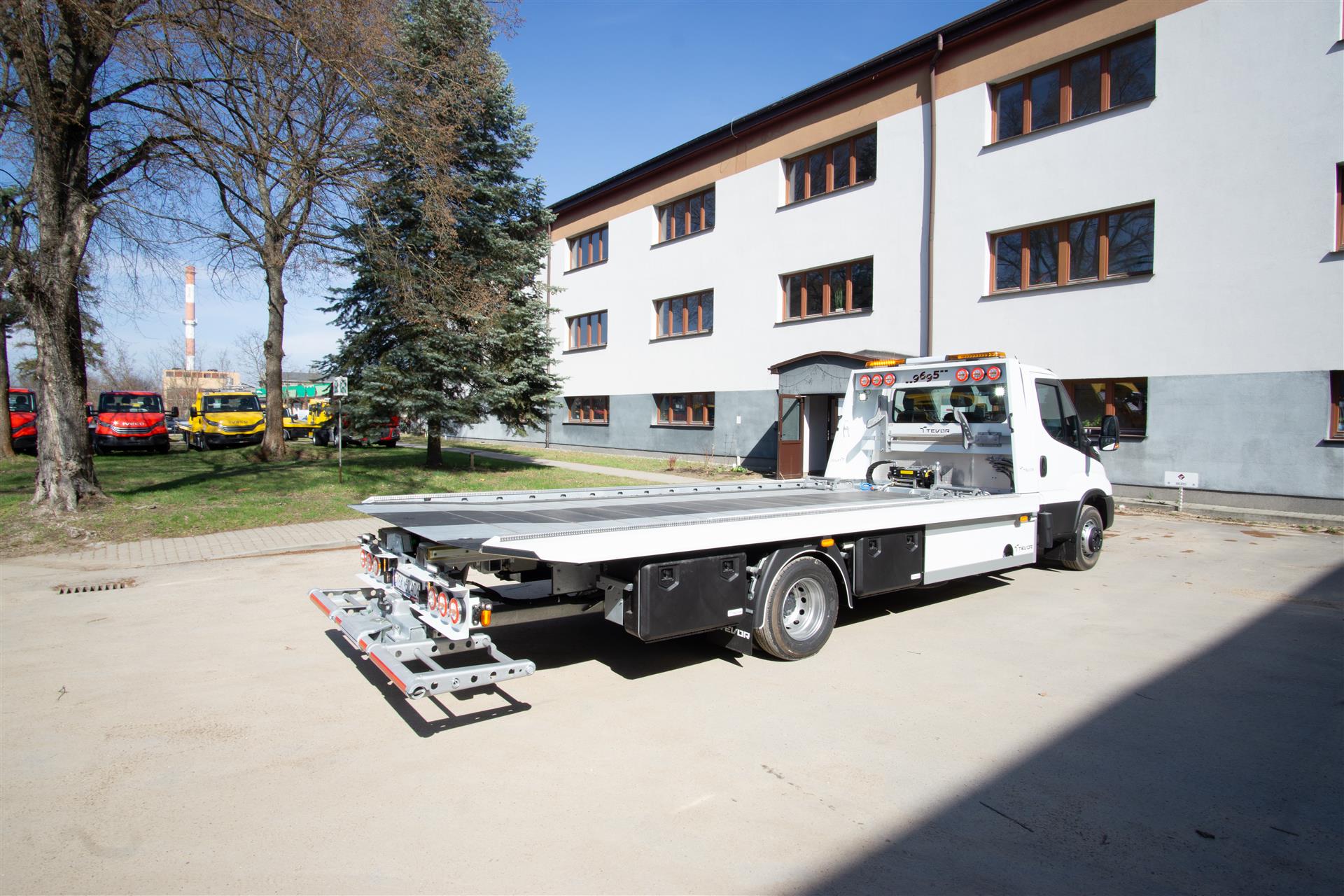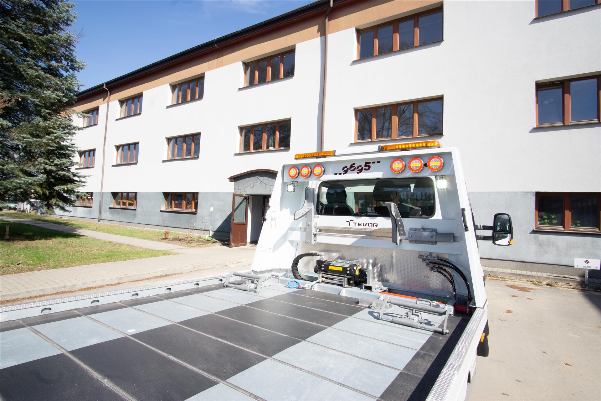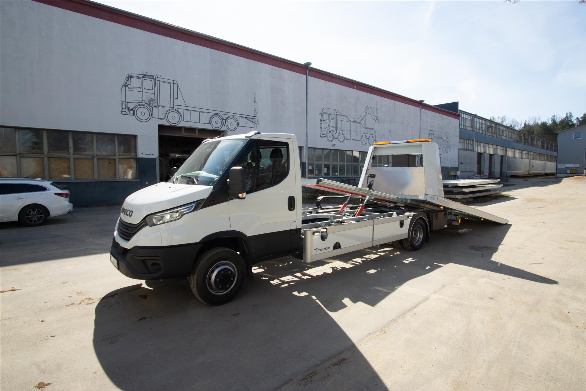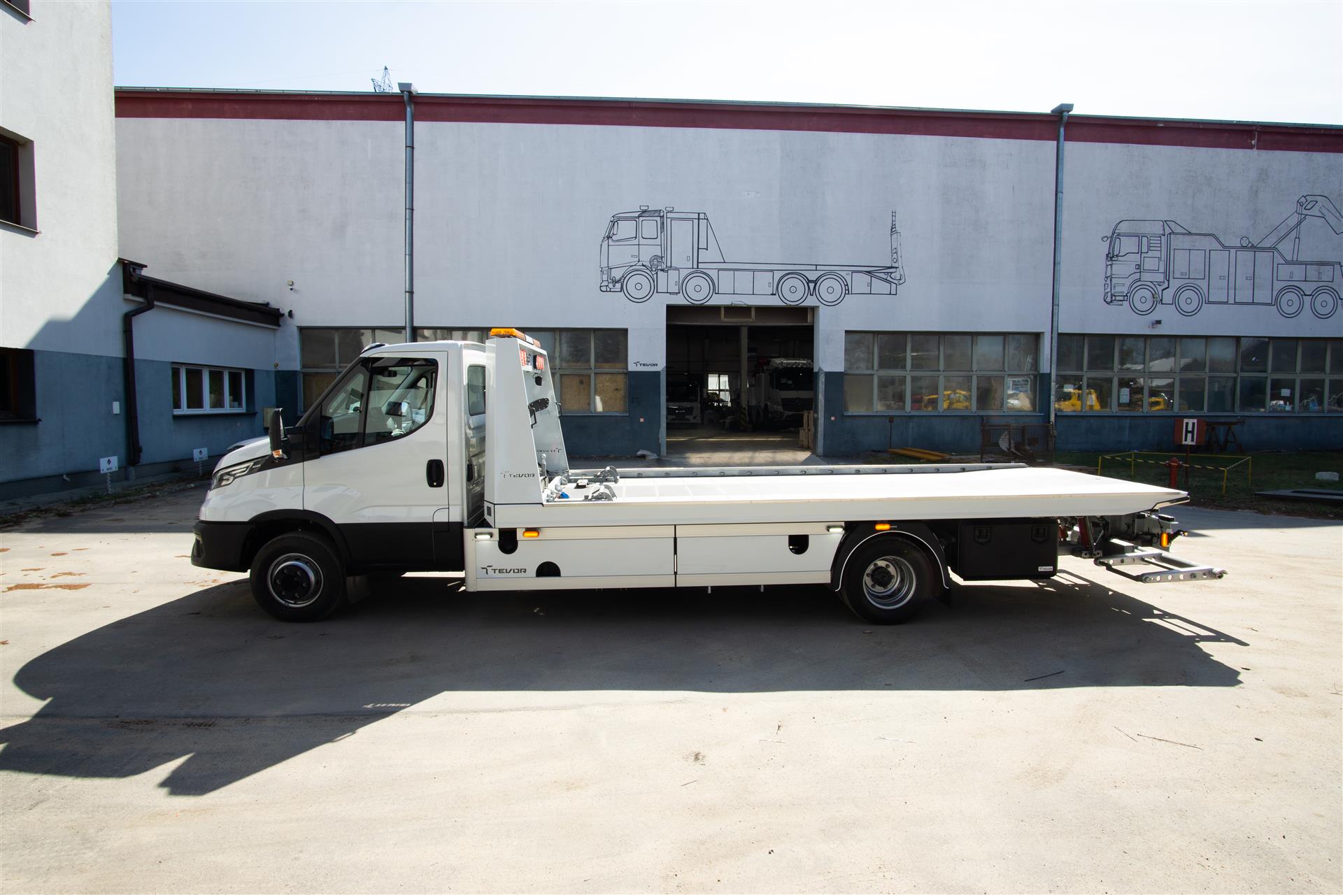 Platforma uchylana i zsuwana tylną krawędzią do podłoża za pomocą siłowników hydraulicznych. Platforma o konstrukcji panelowej wykonana z poprzecznie ułożonych specjalnych profili stalowych o wysokiej jakości i wytrzymałości. Kształt platformy zapobiega przedostawaniu się płynów eksploatacyjnych z holowanych pojazdów do gruntu. Posiada znak CE (zgodny z normami Unii Europejskiej).