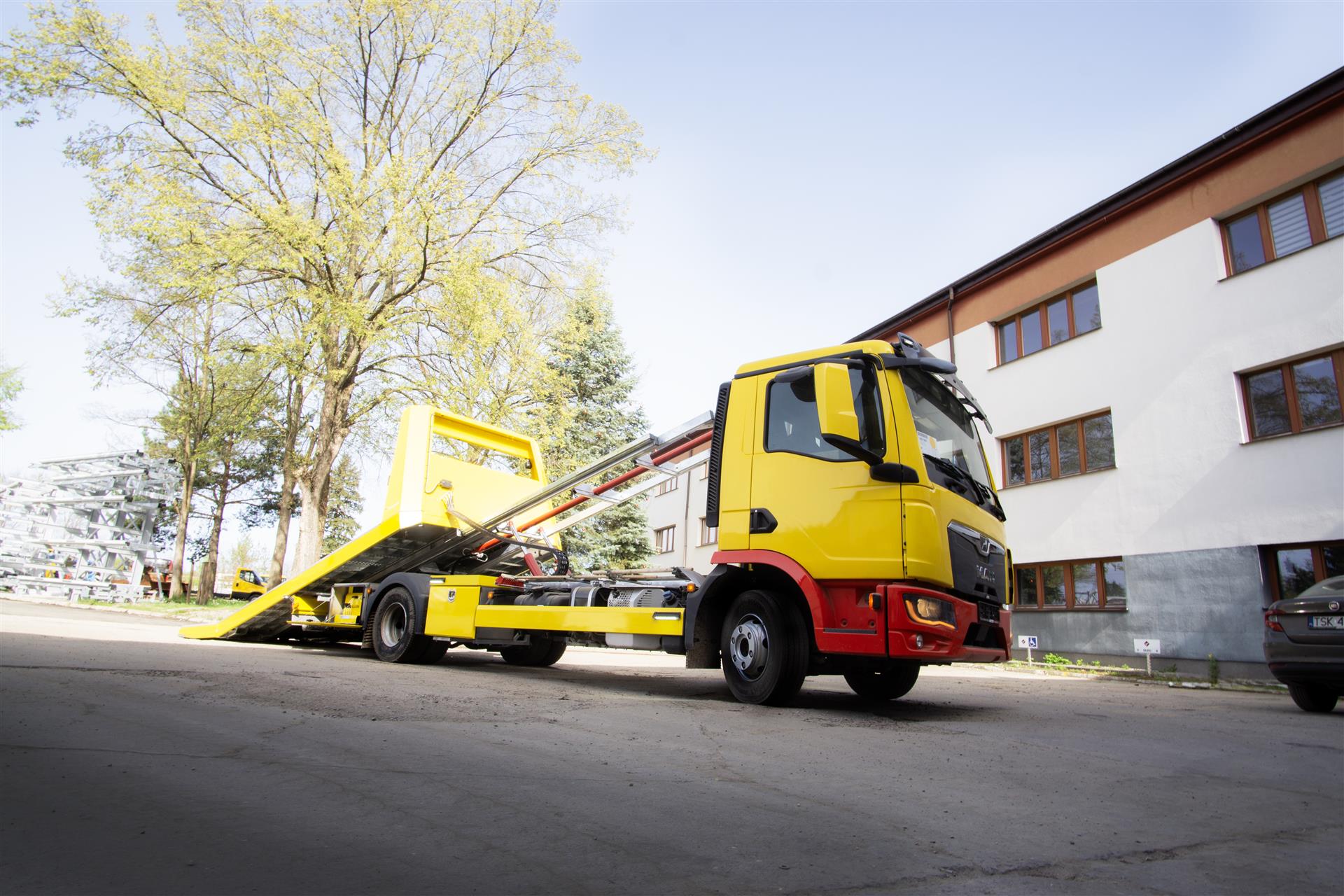 Platforma uchylana i zsuwana tylną krawędzią do podłoża za pomocą siłowników hydraulicznych. Platforma o konstrukcji panelowej wykonana z poprzecznie ułożonych specjalnych profili stalowych o wysokiej jakości i wytrzymałości. Kształt platformy zapobiega przedostawaniu się płynów eksploatacyjnych z holowanych pojazdów do gruntu. Posiada znak CE (zgodny z normami Unii Europejskiej).