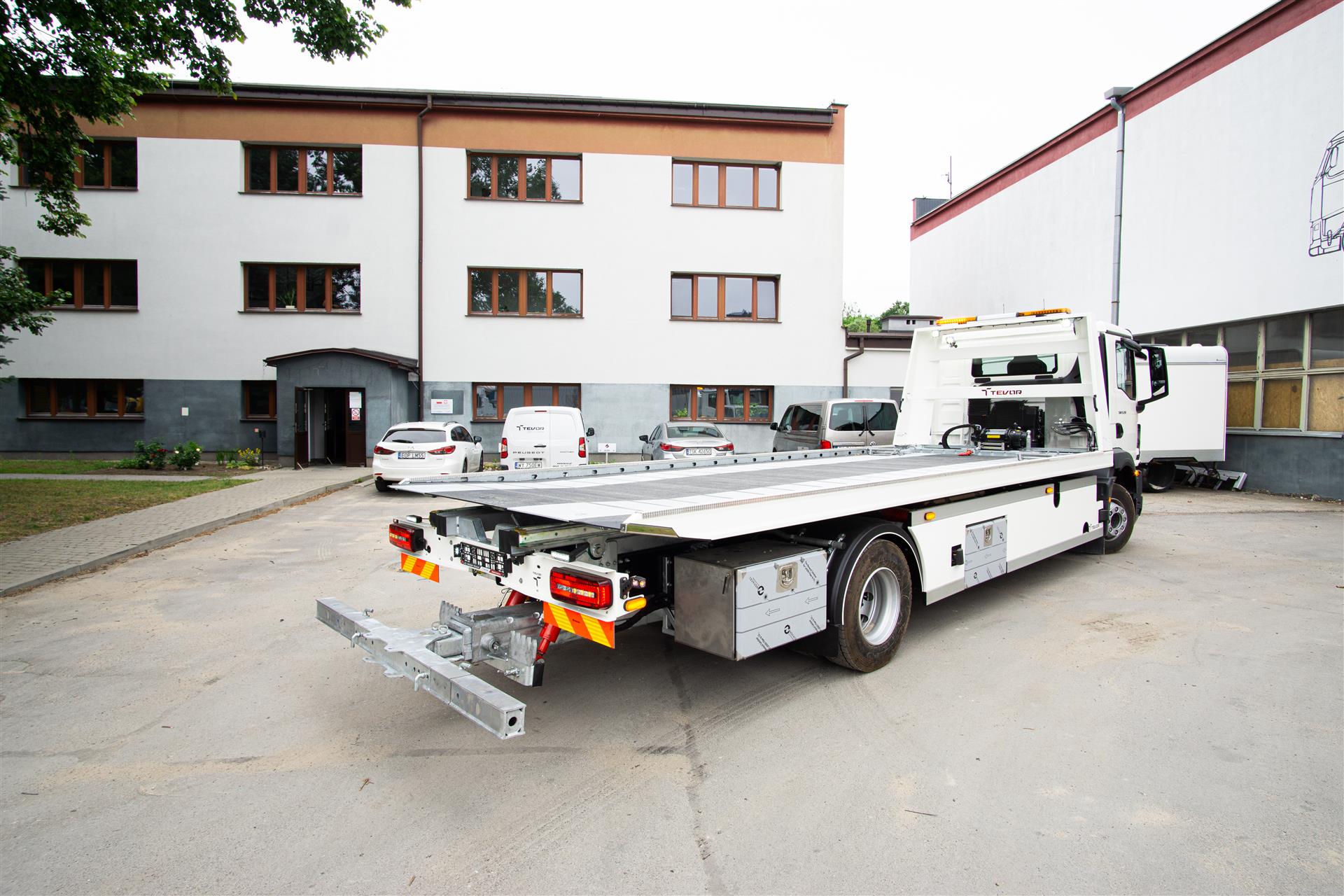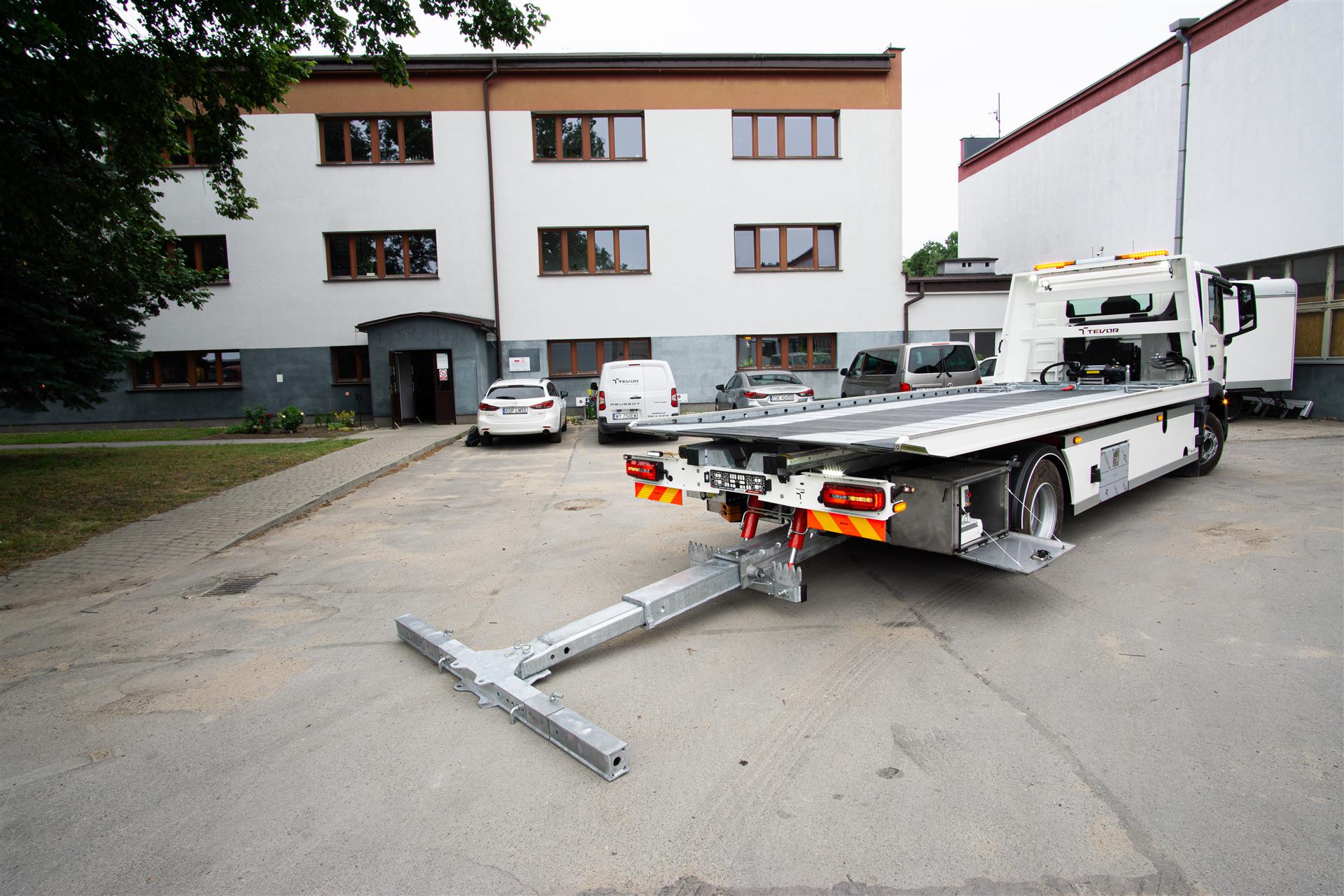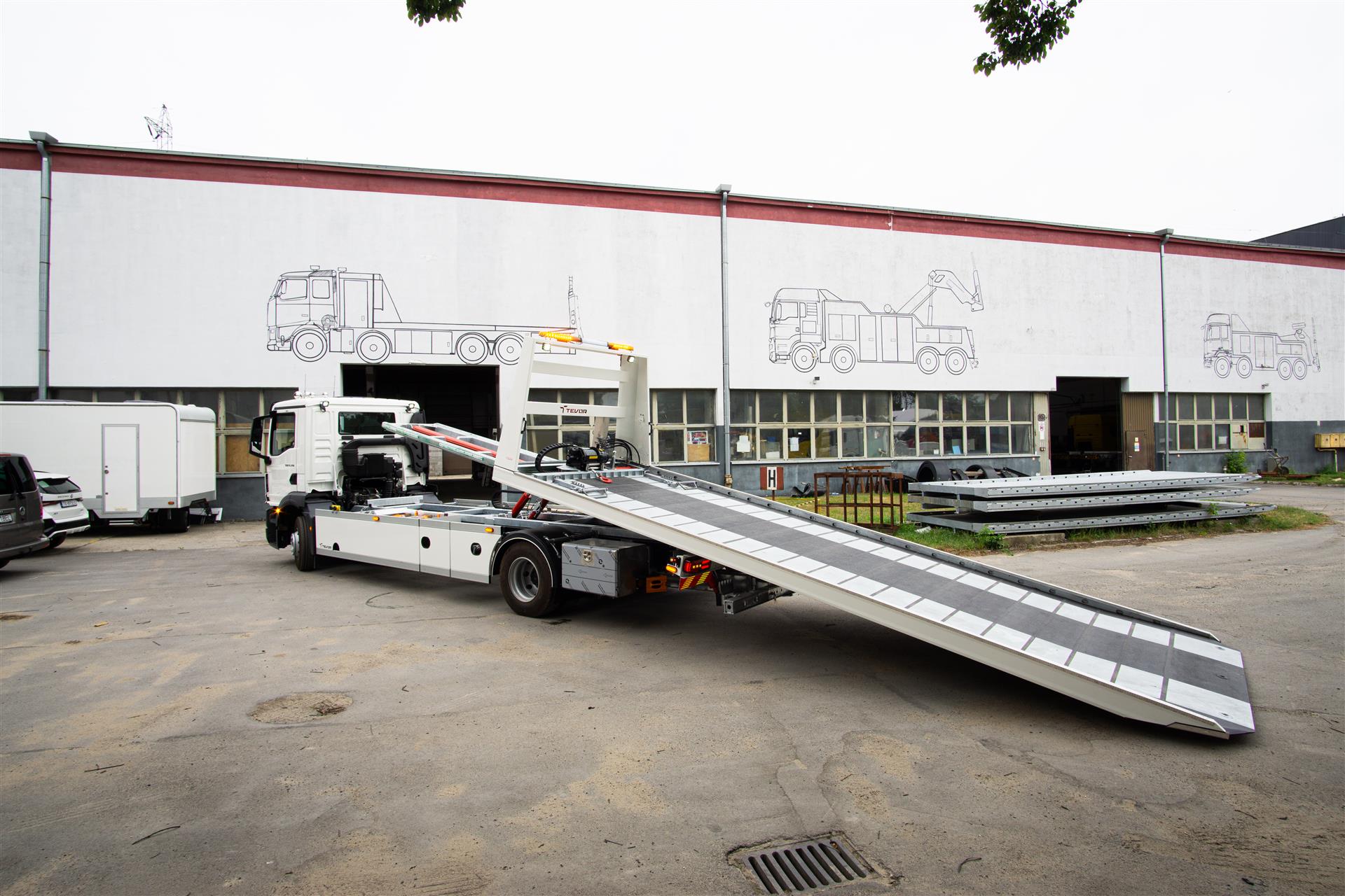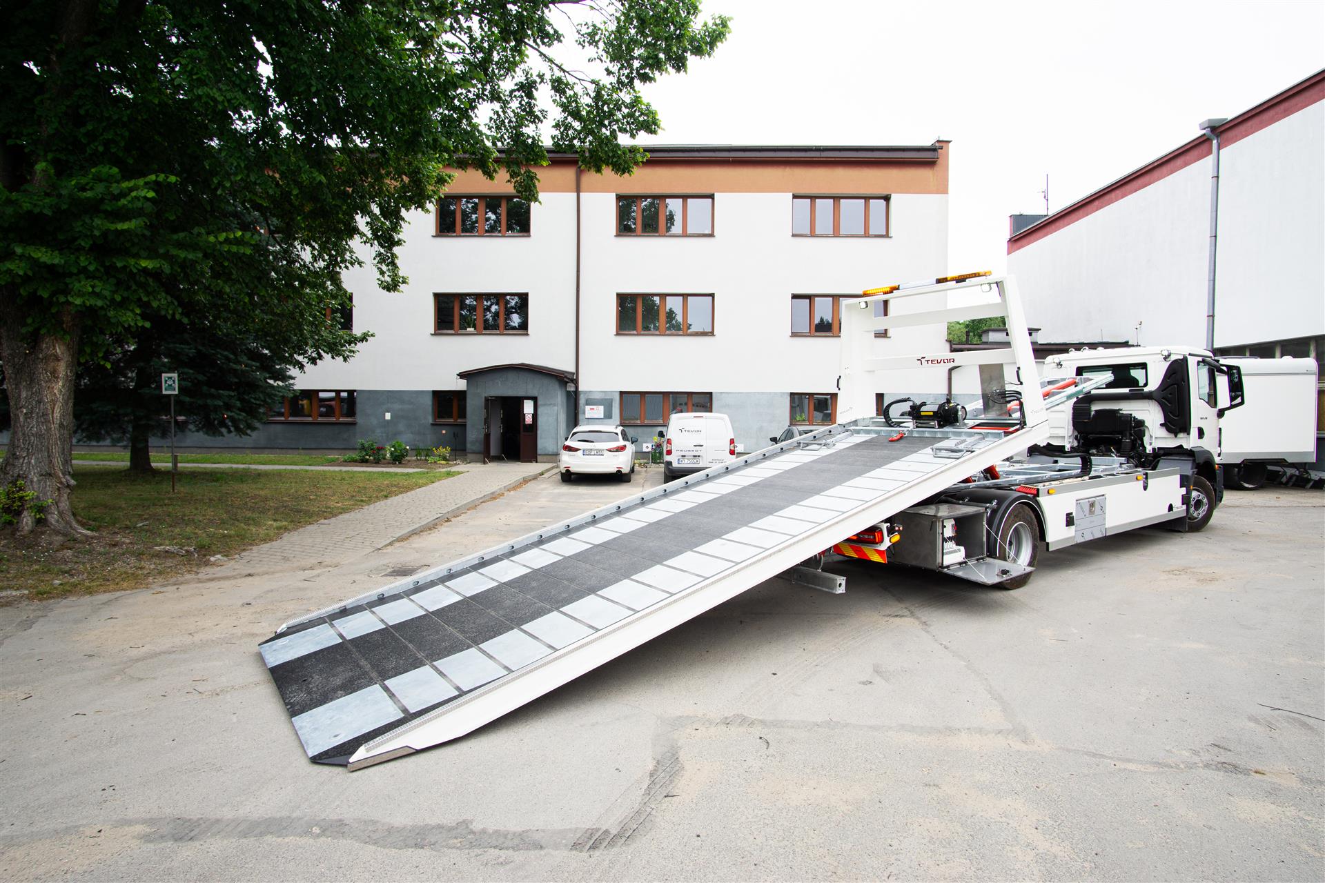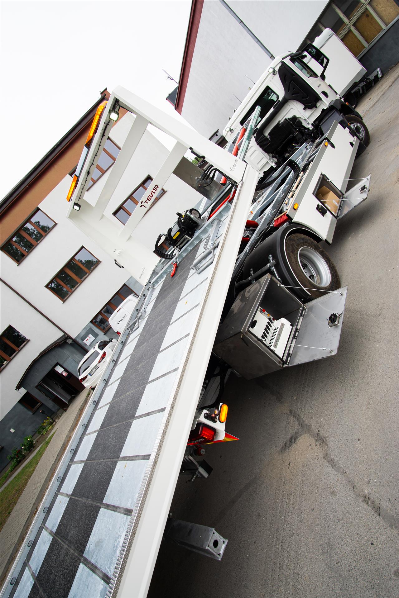 Platforma uchylana i zsuwana tylną krawędzią do podłoża za pomocą siłowników hydraulicznych. Platforma o konstrukcji panelowej wykonana z poprzecznie ułożonych specjalnych profili stalowych o wysokiej jakości i wytrzymałości. Kształt platformy zapobiega przedostawaniu się płynów eksploatacyjnych z holowanych pojazdów do gruntu. Posiada znak CE (zgodny z normami Unii Europejskiej).