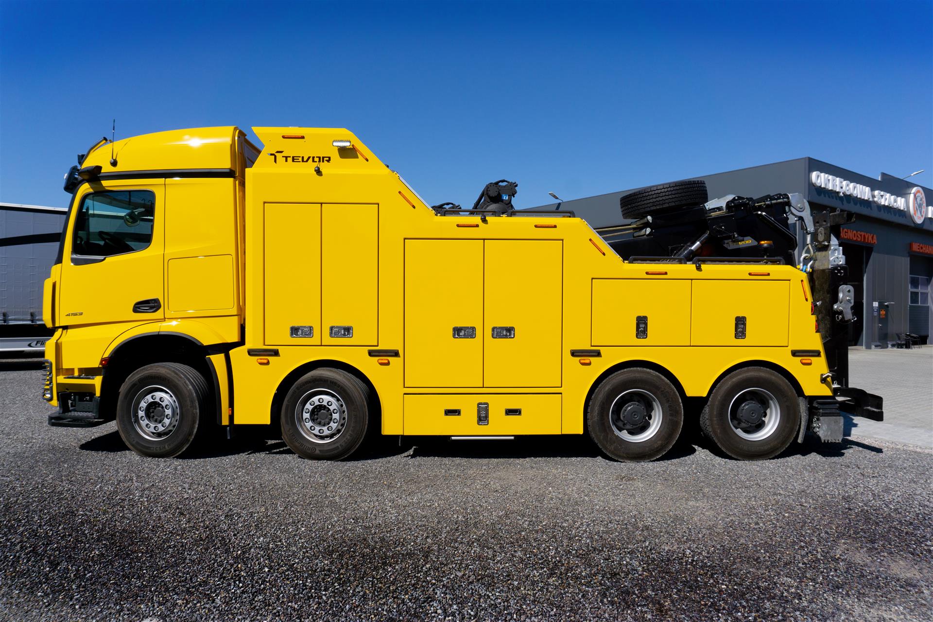 Zabudowa holownicza do usuwania skutków wypadków drogowych z udziałem samochodów ciężarowych, autobusów, zestawów drogowych oraz ratownictwa drogowego. W tylnej części zamontowany wysięgnik holowniczy z podwójnym wysuwem hydraulicznym, regulowanym w trzech płaszczyznach zakończony wielofunkcyjną trawersą holowniczą z możliwością zamontowania dodatkowego osprzętu. Karoseria zabudowy z szafkami przeznaczonymi na dodatkowe wyposażenie: np. agregat prądotwórczy, kompresor, nożyce hydrauliczne, zestaw ratowniczy R1, moduły holownicze itp.