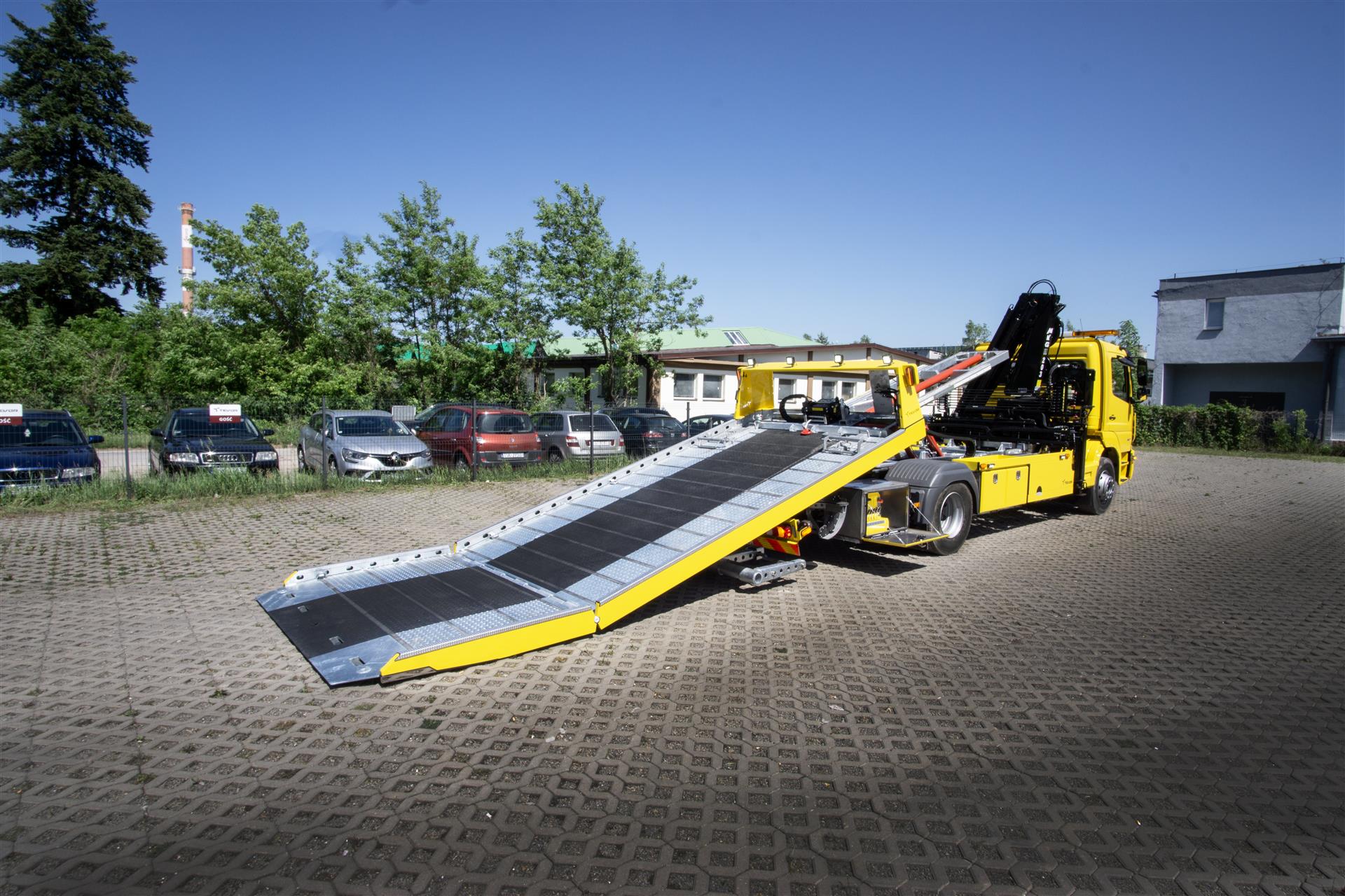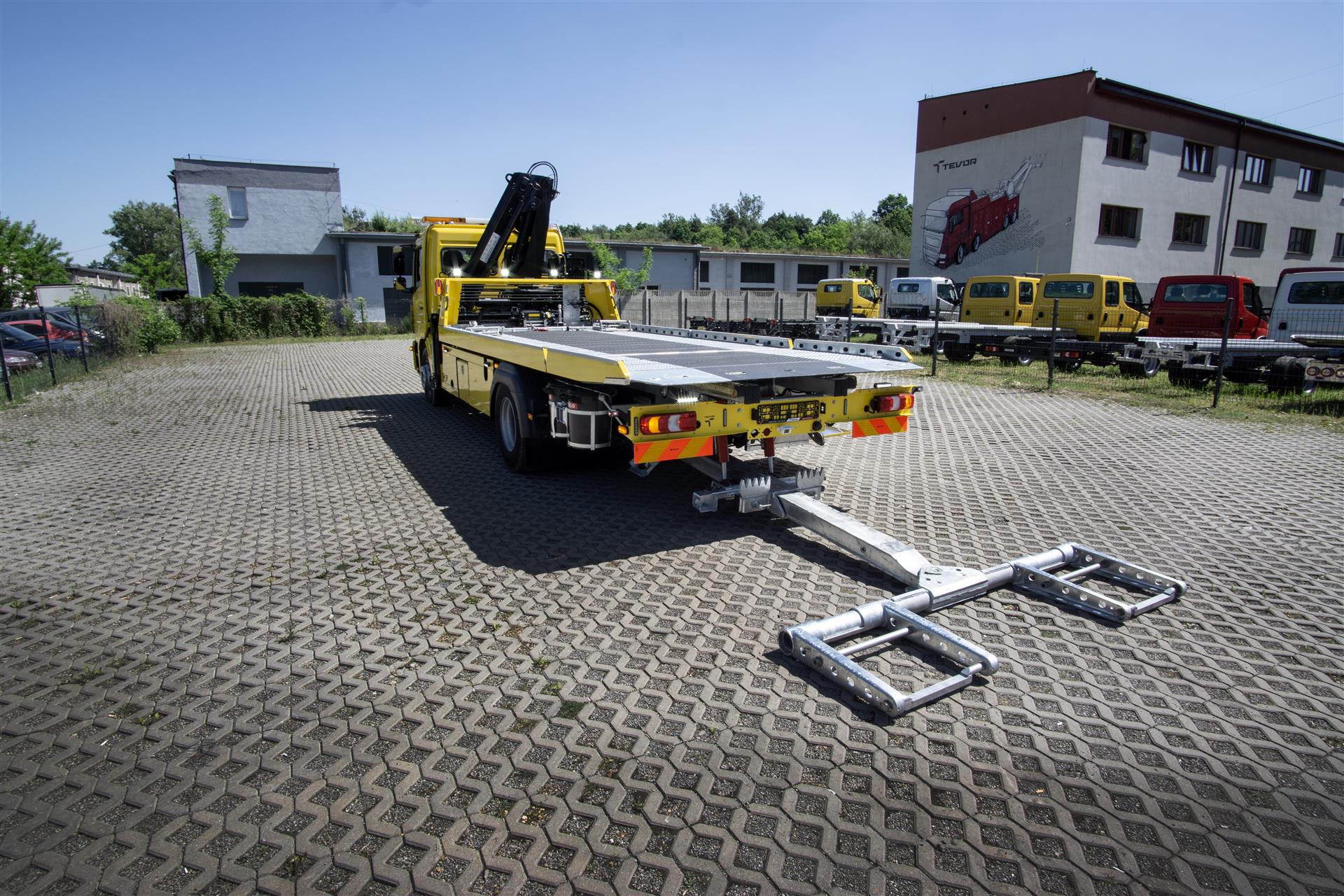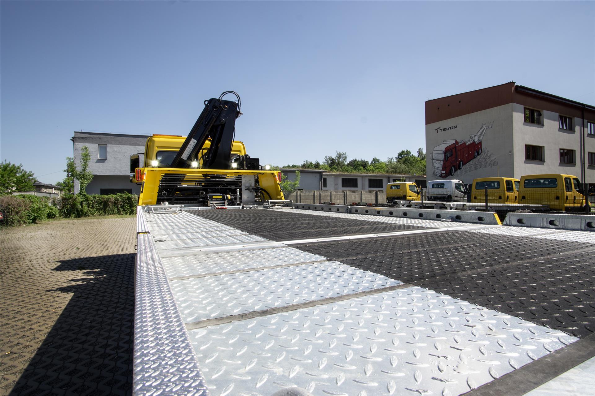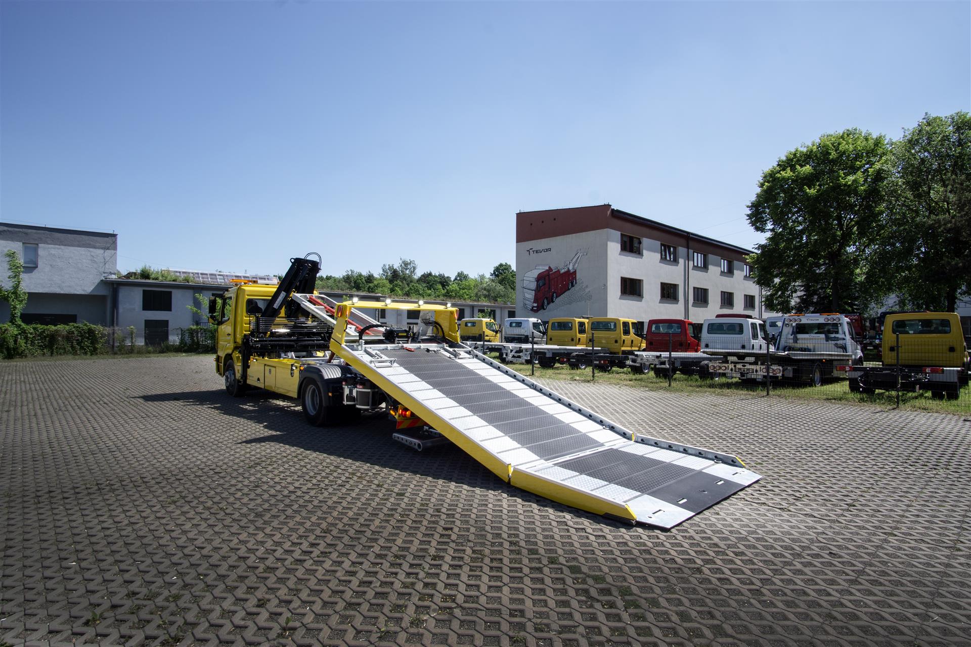 Platforma uchylana i zsuwana tylną krawędzią do podłoża za pomocą siłowników hydraulicznych. Platforma o konstrukcji panelowej wykonana z poprzecznie ułożonych specjalnych profili stalowych o wysokiej jakości i wytrzymałości. Kształt platformy zapobiega przedostawaniu się płynów eksploatacyjnych z holowanych pojazdów do gruntu. Posiada znak CE (zgodny z normami Unii Europejskiej).