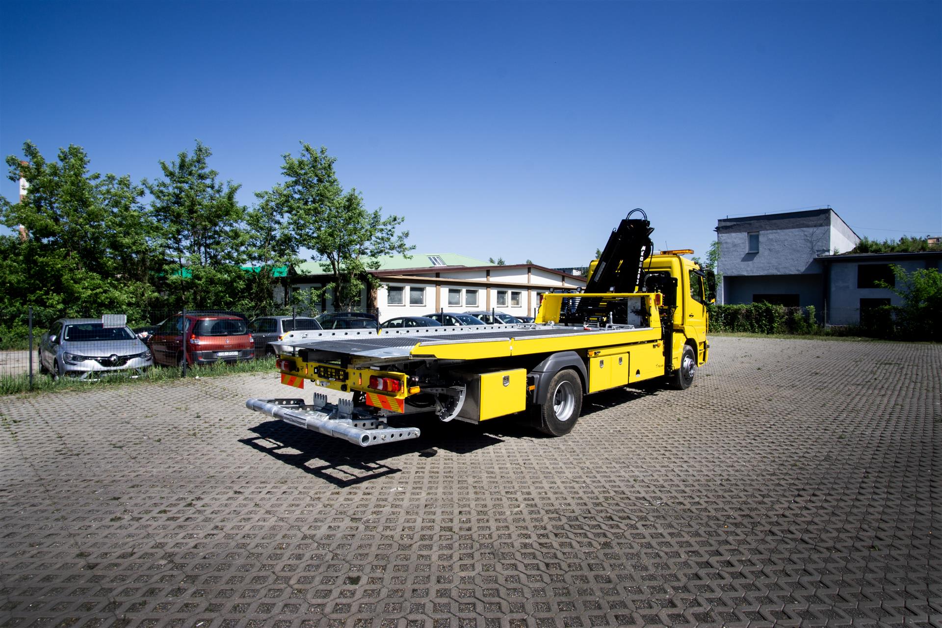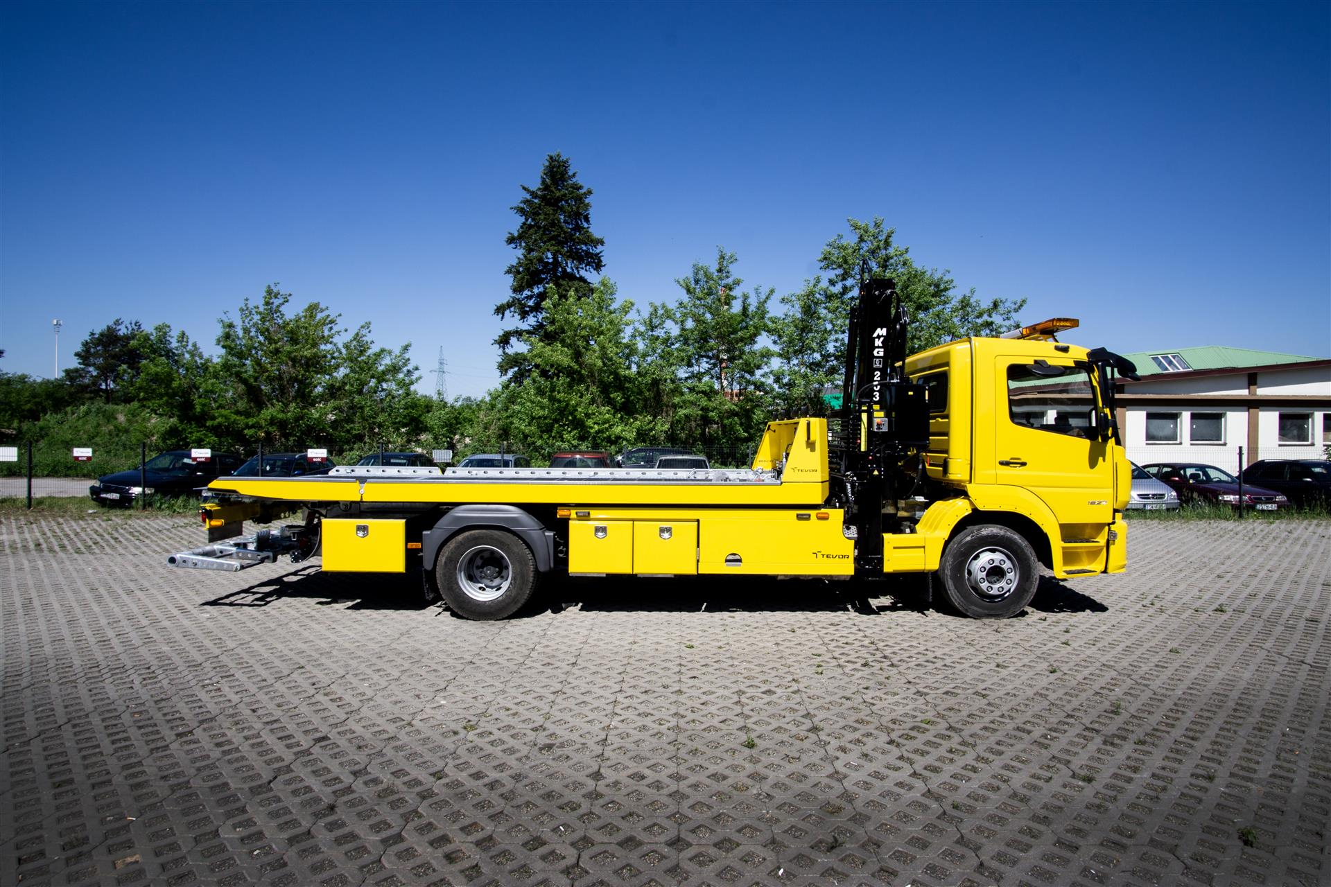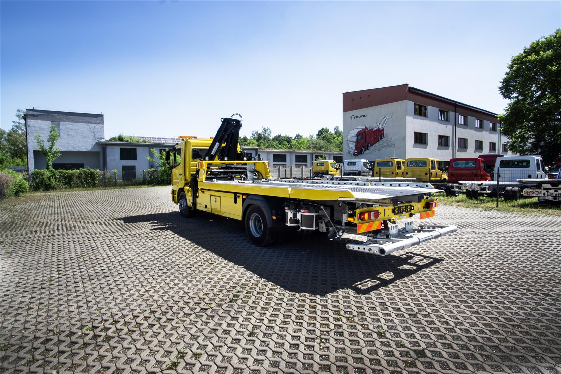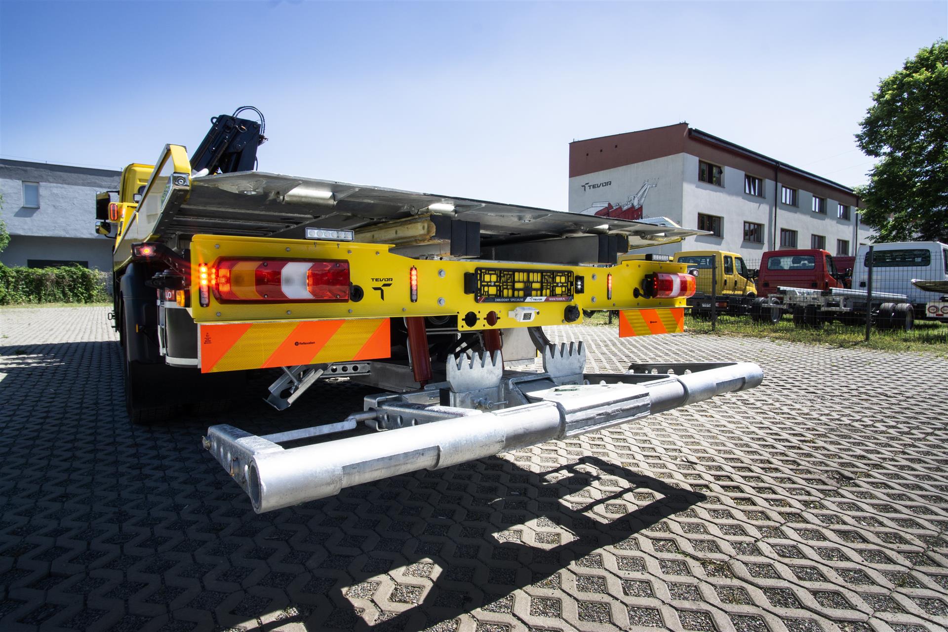Platforma uchylana i zsuwana tylną krawędzią do podłoża za pomocą siłowników hydraulicznych. Platforma o konstrukcji panelowej wykonana z poprzecznie ułożonych specjalnych profili stalowych o wysokiej jakości i wytrzymałości. Kształt platformy zapobiega przedostawaniu się płynów eksploatacyjnych z holowanych pojazdów do gruntu. Posiada znak CE (zgodny z normami Unii Europejskiej).