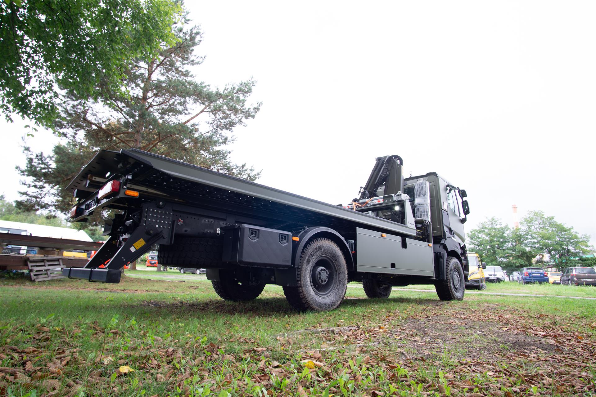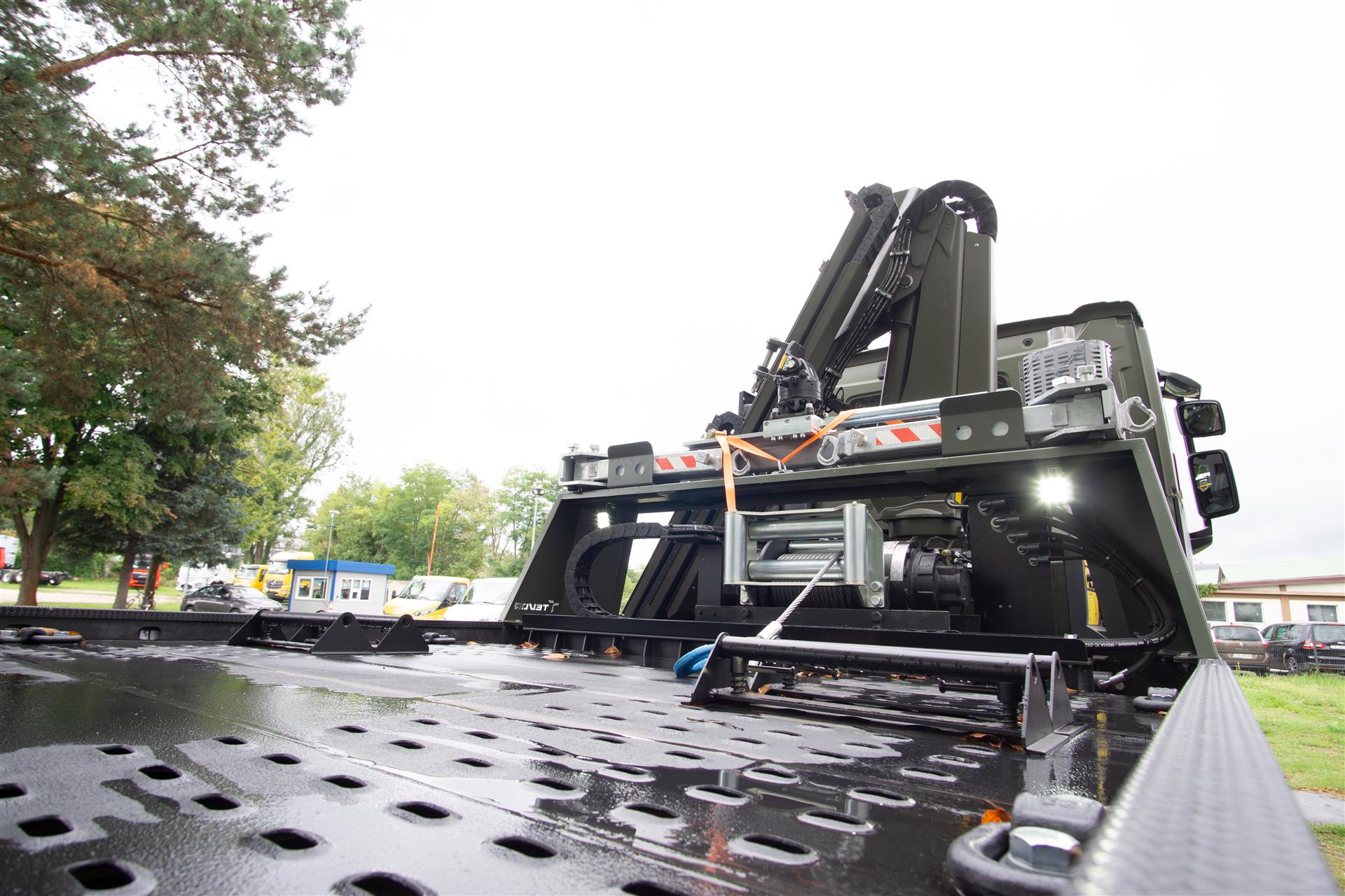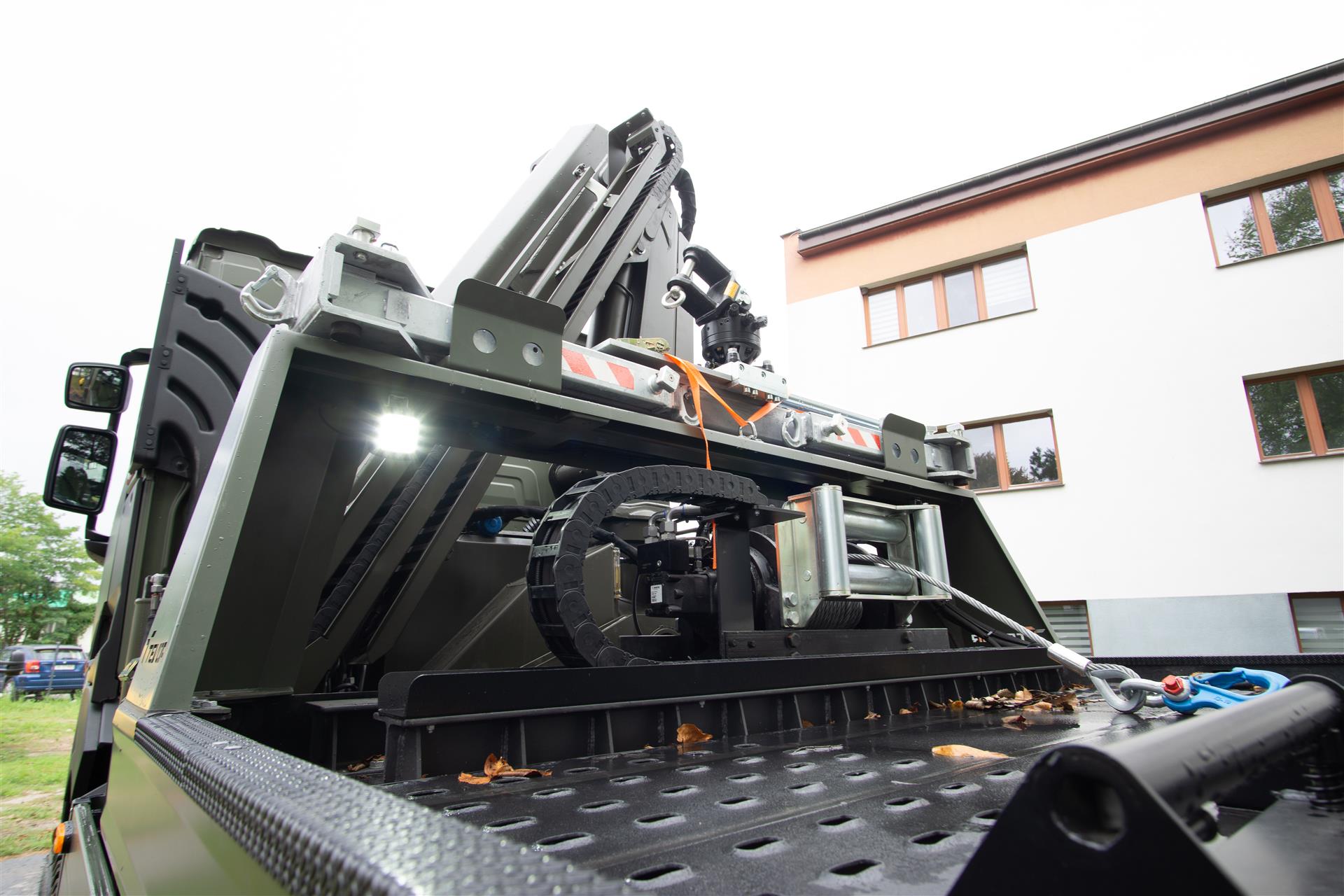 Platforma uchylana i zsuwana tylną krawędzią do podłoża za pomocą siłowników hydraulicznych. Platforma o konstrukcji panelowej wykonana z poprzecznie ułożonych specjalnych profili stalowych o wysokiej jakości i wytrzymałości. Kształt platformy zapobiega przedostawaniu się płynów eksploatacyjnych z holowanych pojazdów do gruntu. Posiada znak CE (zgodny z normami Unii Europejskiej).