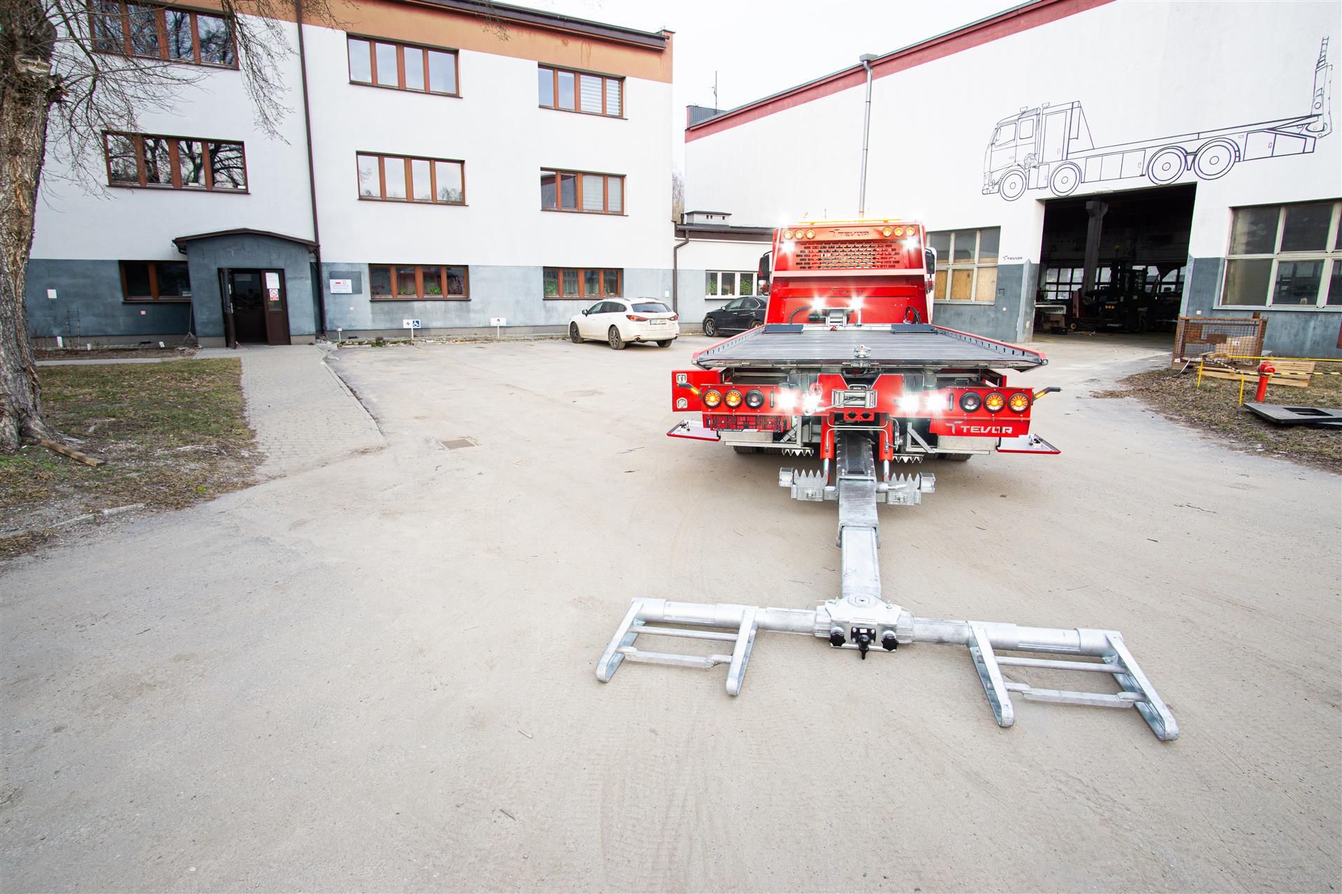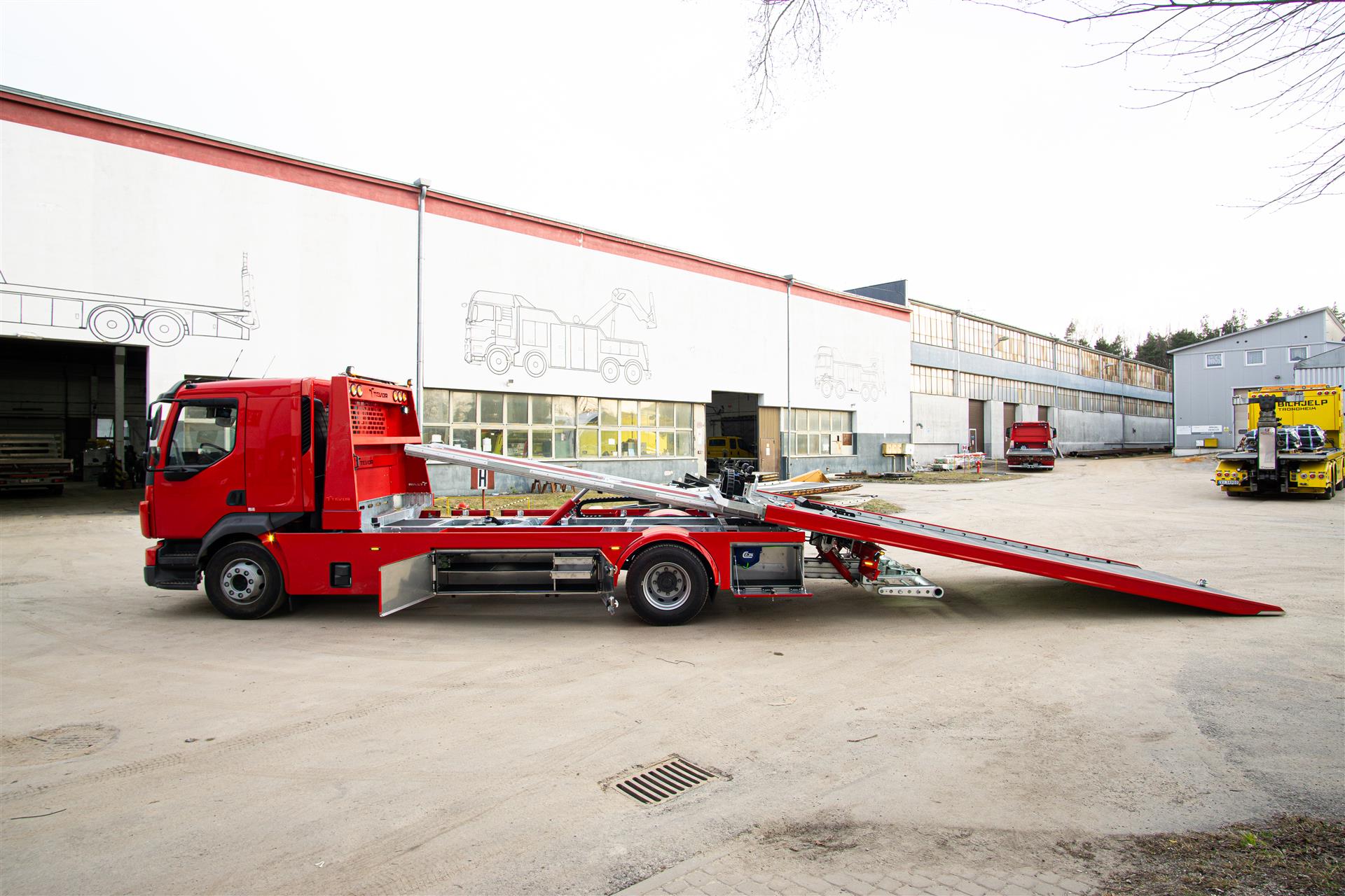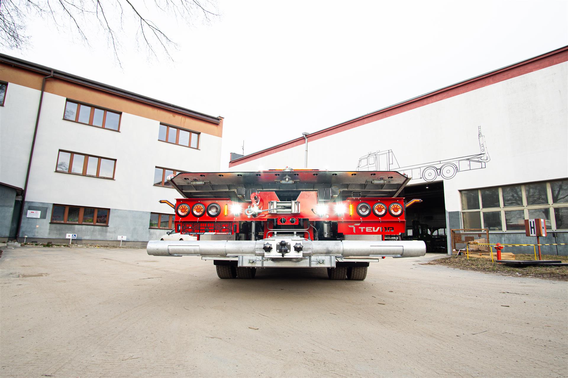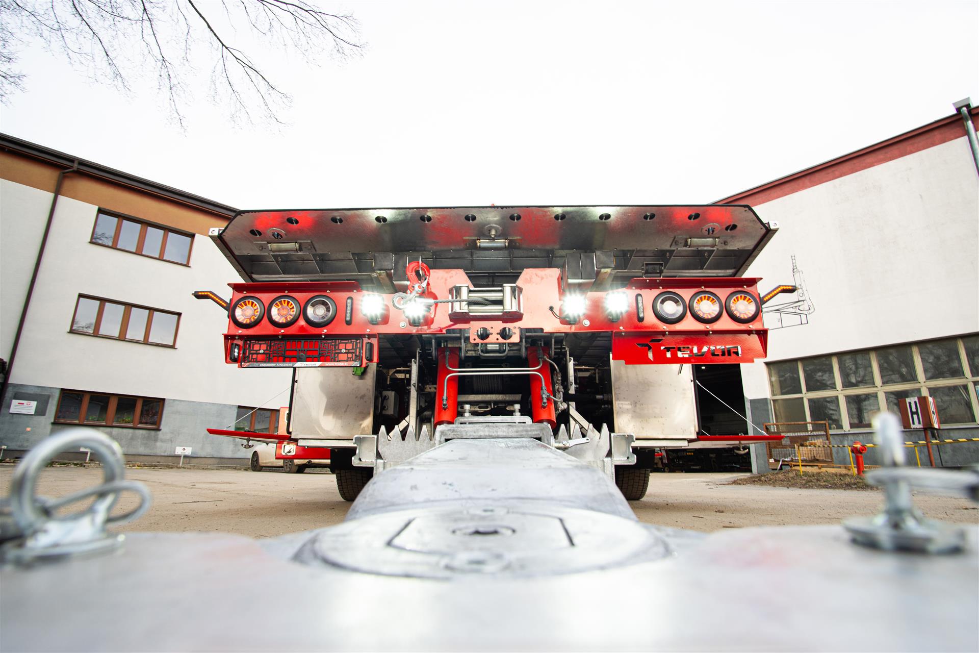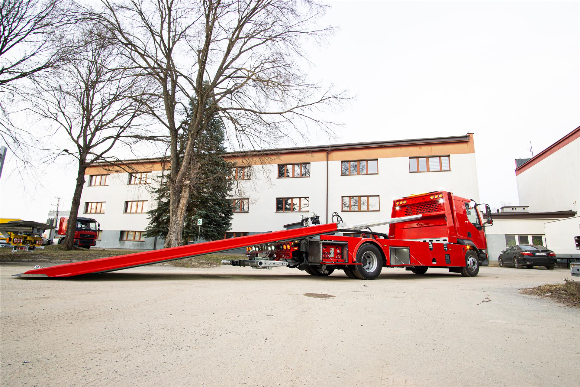 Platforma uchylana i zsuwana tylną krawędzią do podłoża za pomocą siłowników hydraulicznych. Platforma o konstrukcji panelowej wykonana z poprzecznie ułożonych specjalnych profili stalowych o wysokiej jakości i wytrzymałości. Kształt platformy zapobiega przedostawaniu się płynów eksploatacyjnych z holowanych pojazdów do gruntu. Posiada znak CE (zgodny z normami Unii Europejskiej).