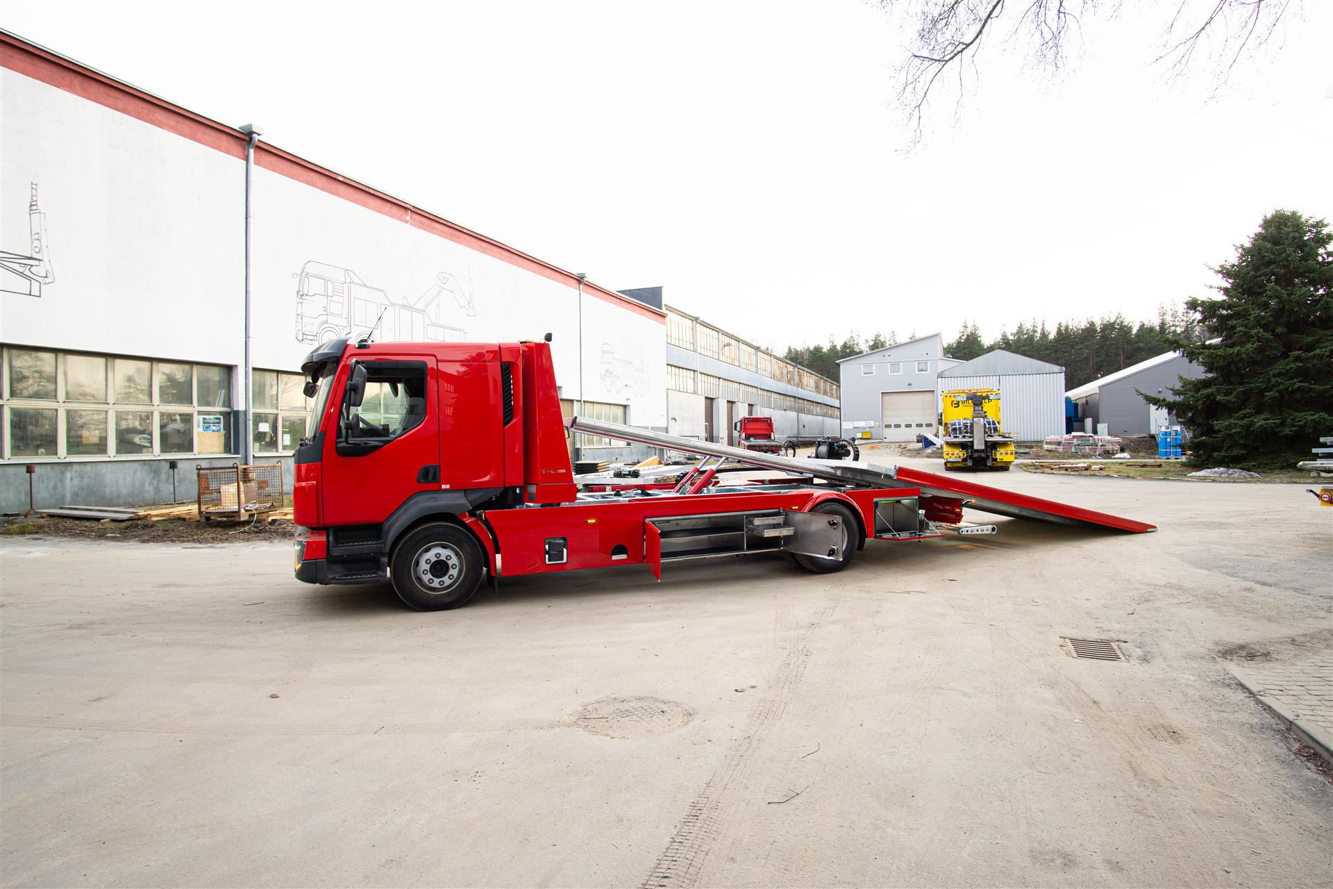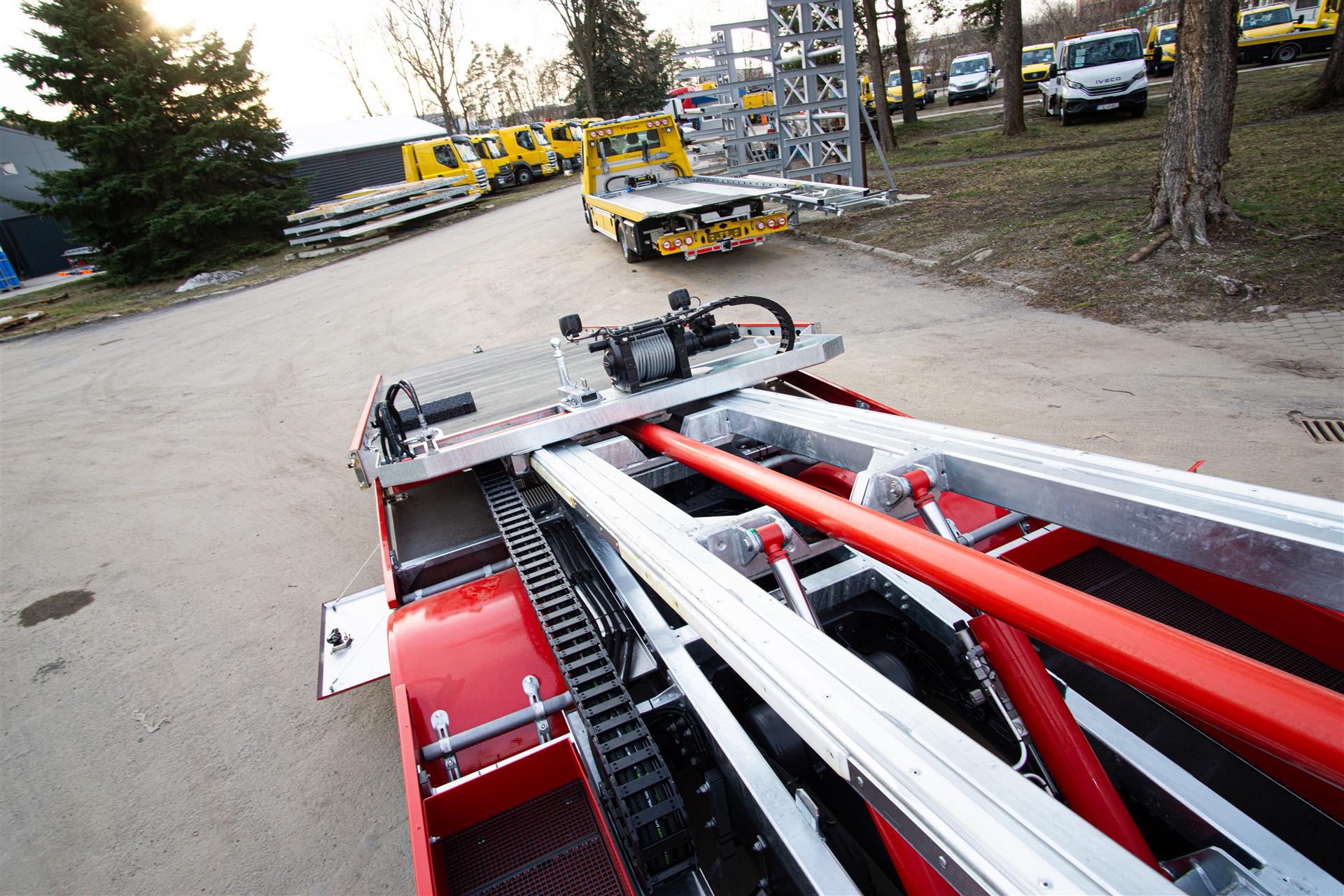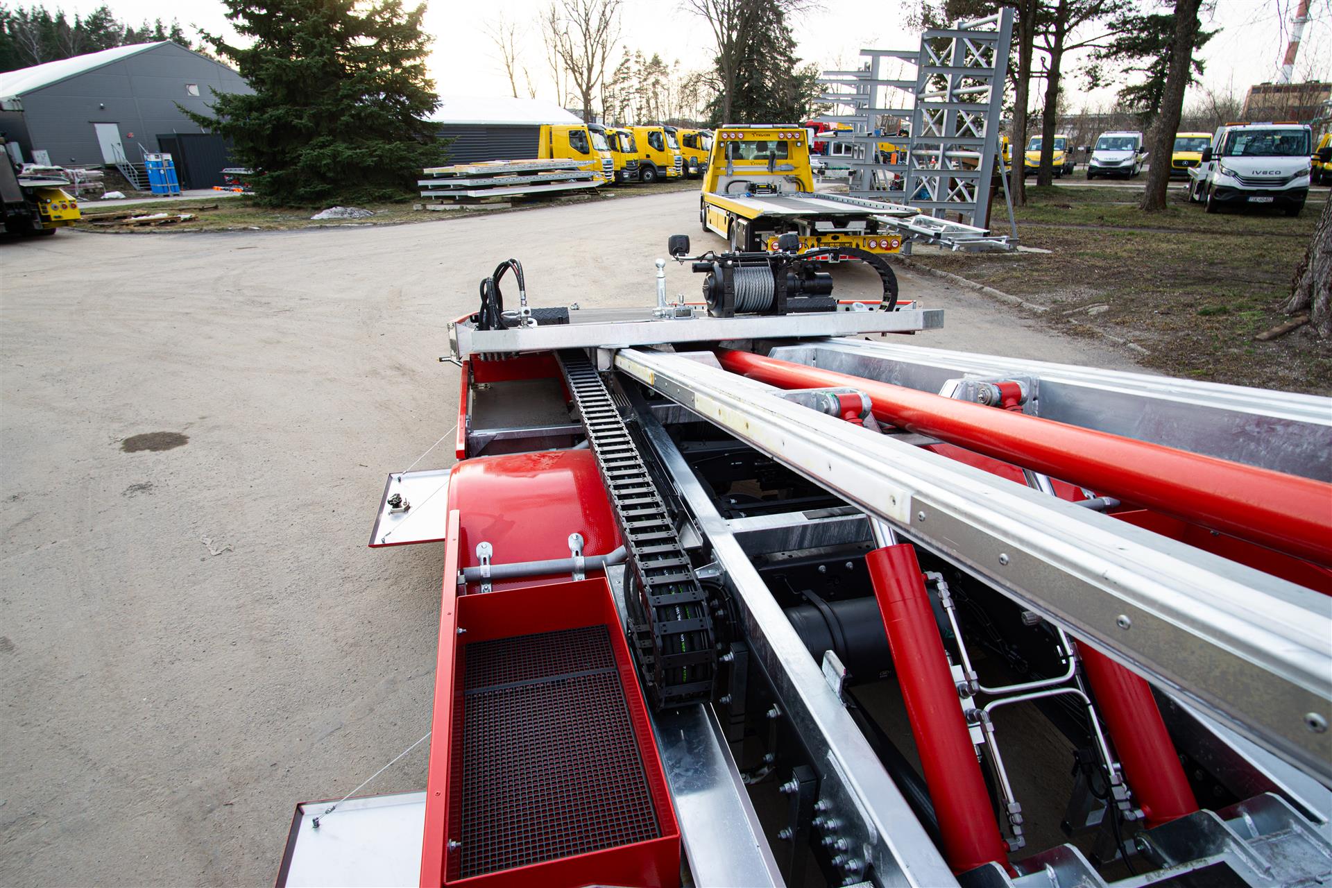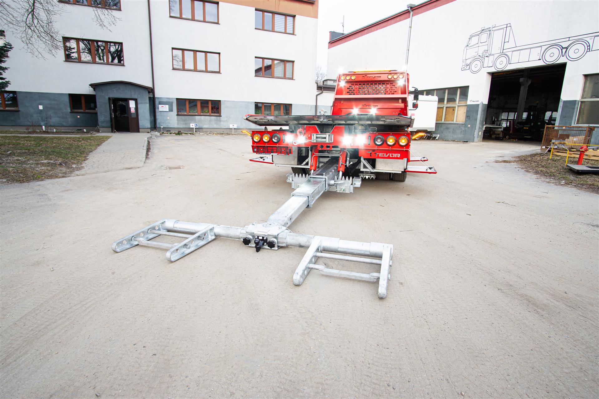 Platforma uchylana i zsuwana tylną krawędzią do podłoża za pomocą siłowników hydraulicznych. Platforma o konstrukcji panelowej wykonana z poprzecznie ułożonych specjalnych profili stalowych o wysokiej jakości i wytrzymałości. Kształt platformy zapobiega przedostawaniu się płynów eksploatacyjnych z holowanych pojazdów do gruntu. Posiada znak CE (zgodny z normami Unii Europejskiej).