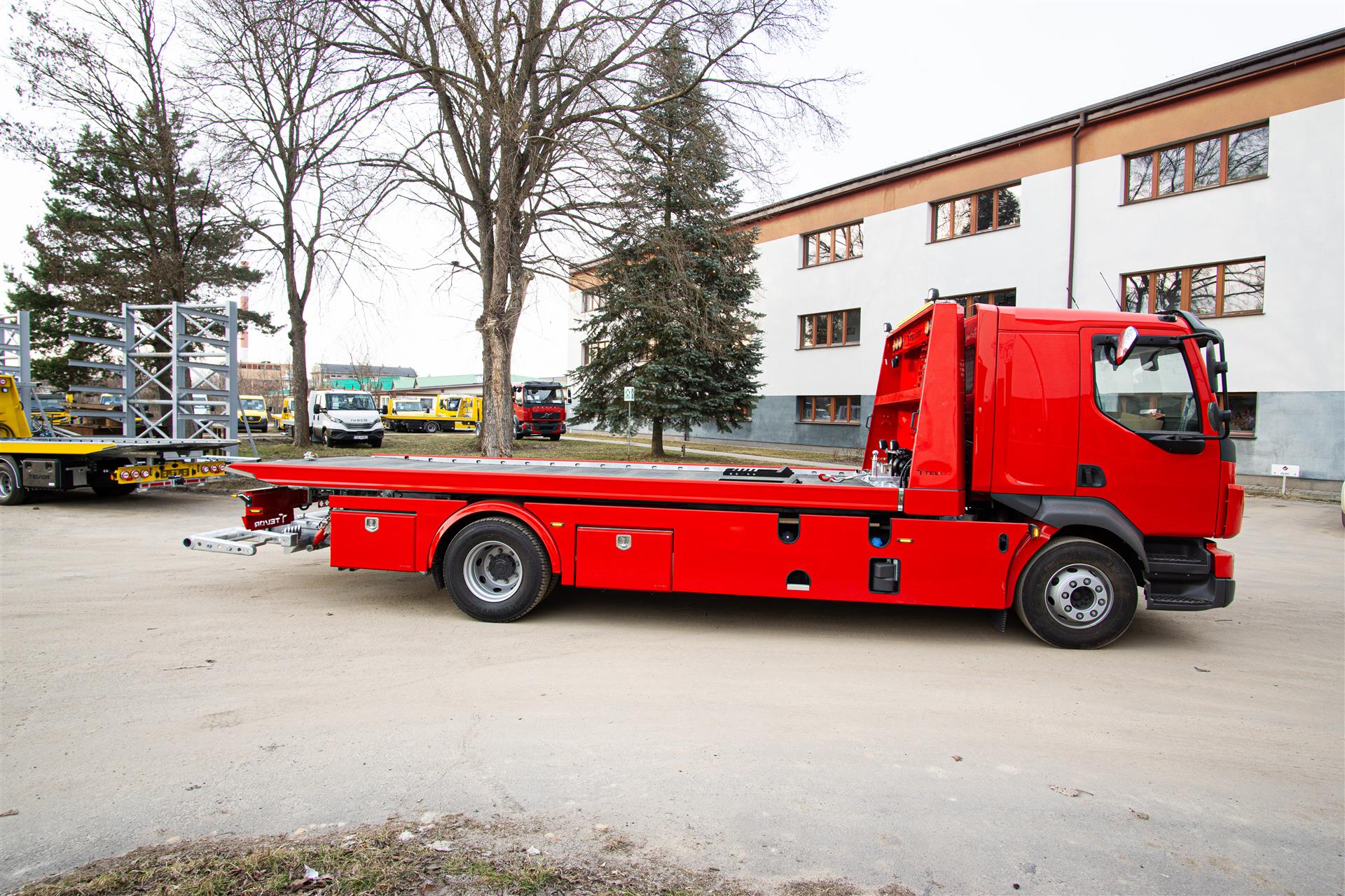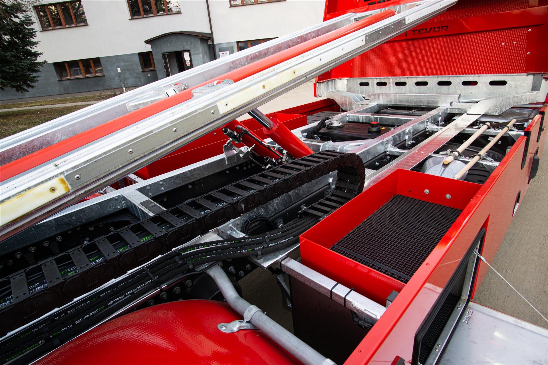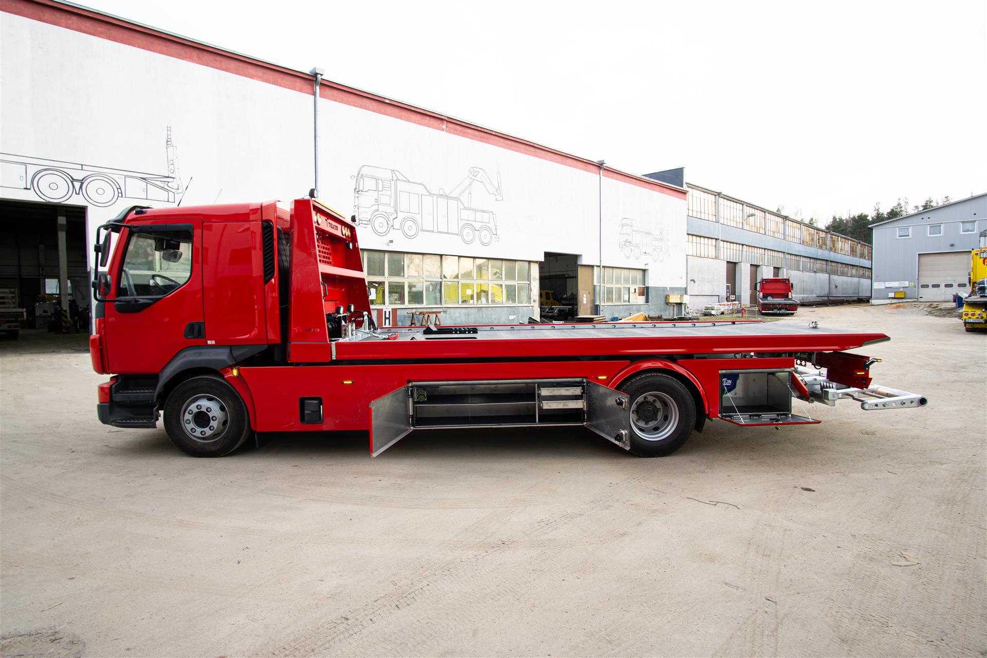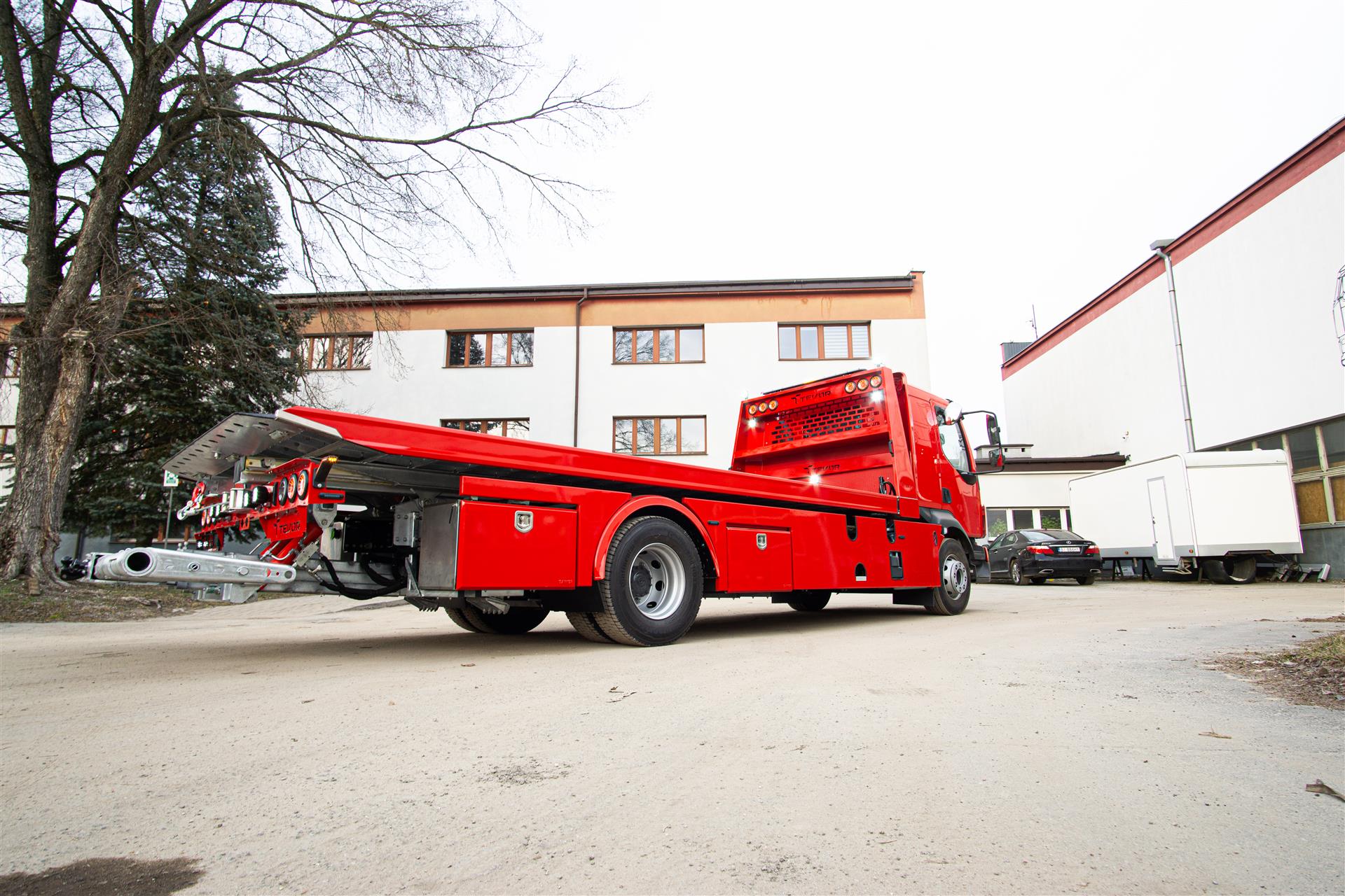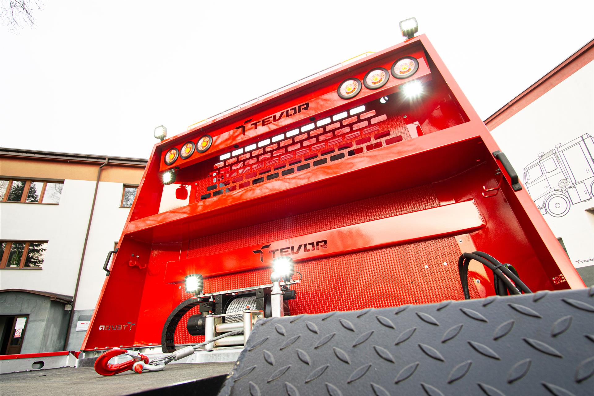 Platforma uchylana i zsuwana tylną krawędzią do podłoża za pomocą siłowników hydraulicznych. Platforma o konstrukcji panelowej wykonana z poprzecznie ułożonych specjalnych profili stalowych o wysokiej jakości i wytrzymałości. Kształt platformy zapobiega przedostawaniu się płynów eksploatacyjnych z holowanych pojazdów do gruntu. Posiada znak CE (zgodny z normami Unii Europejskiej).