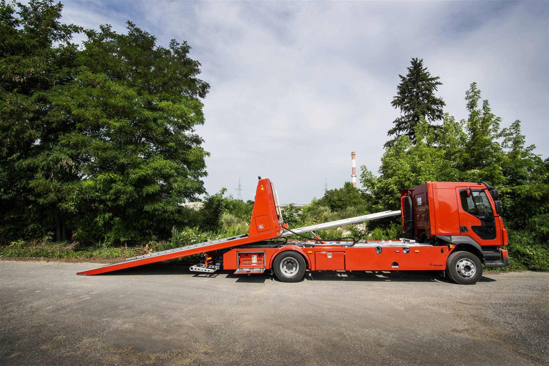 Platforma uchylana i zsuwana tylną krawędzią do podłoża za pomocą siłowników hydraulicznych. Platforma o konstrukcji panelowej wykonana z poprzecznie ułożonych specjalnych profili stalowych o wysokiej jakości i wytrzymałości. Kształt platformy zapobiega przedostawaniu się płynów eksploatacyjnych z holowanych pojazdów do gruntu. Posiada znak CE (zgodny z normami Unii Europejskiej).